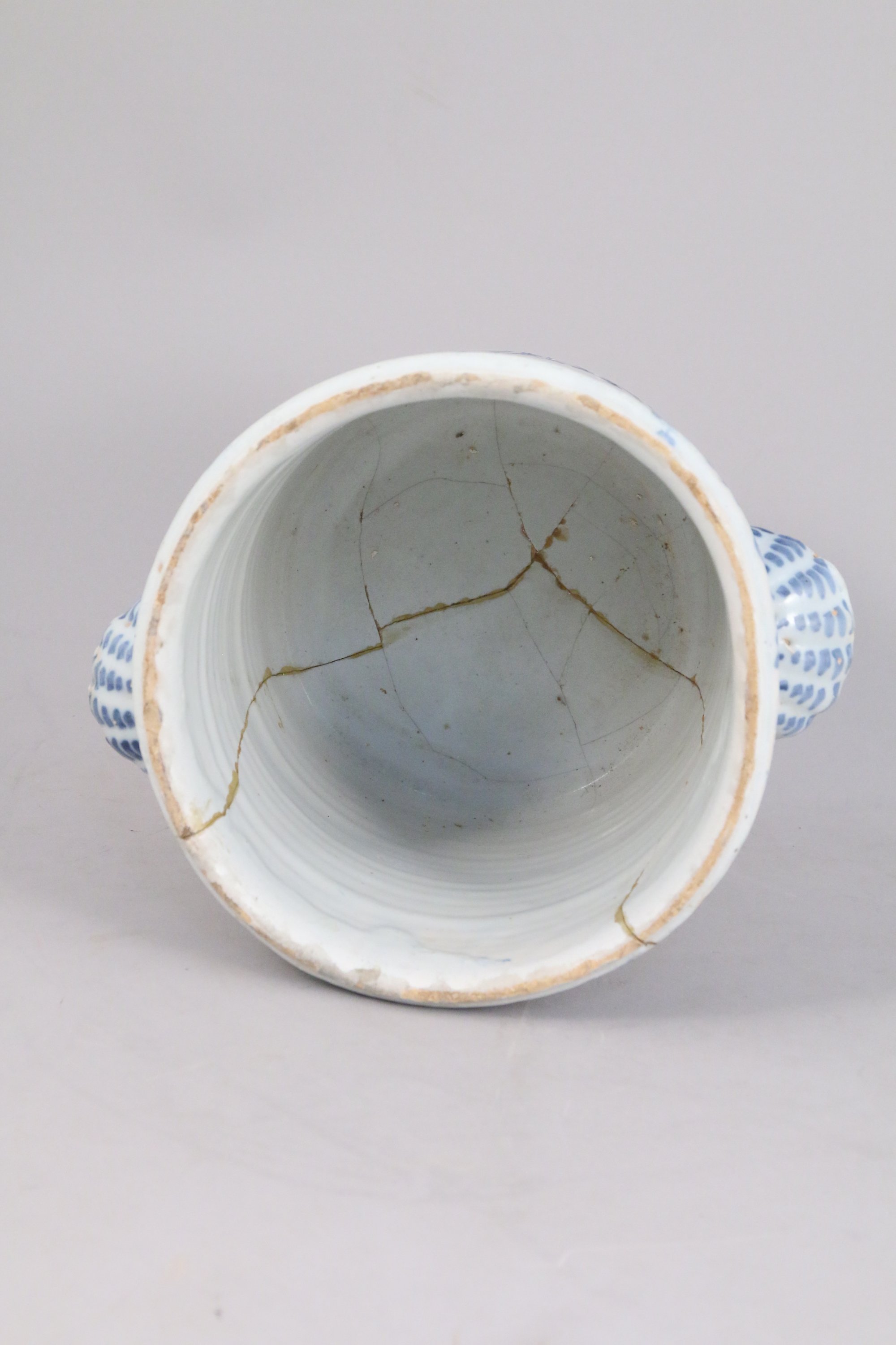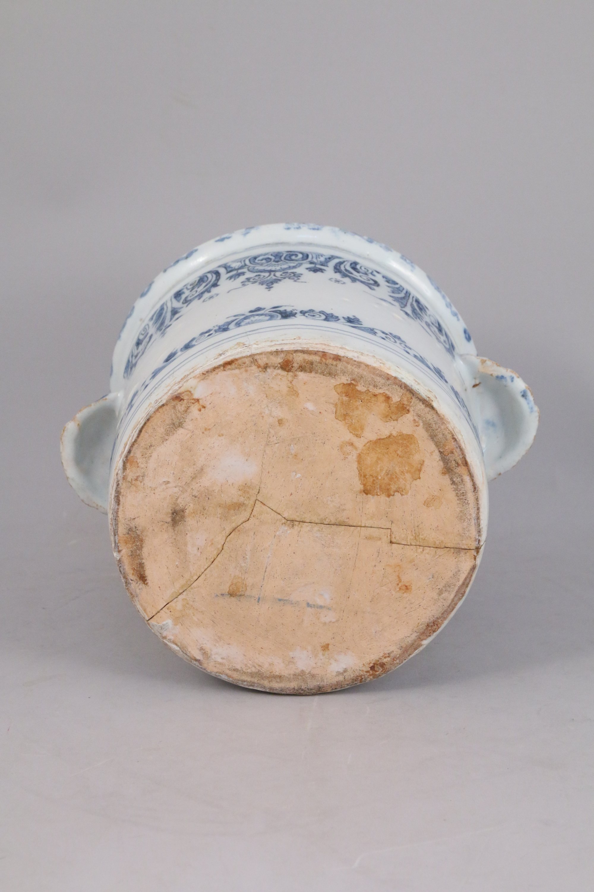 en bleu et blanc à décor de lambrequins. Anses coquilles.