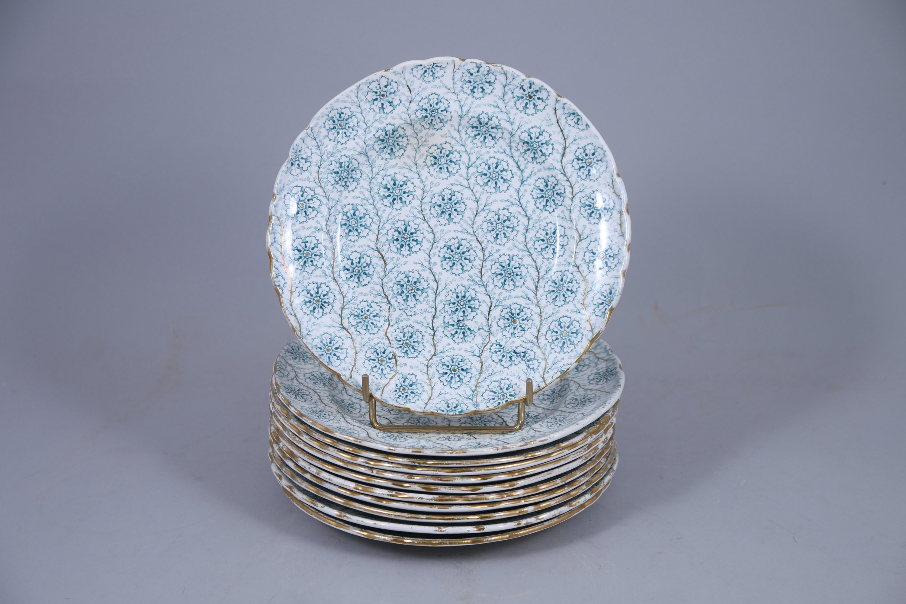 David JOHNSTON. SUITE de ONZE ASSIETTES à DESSERT en faïence...