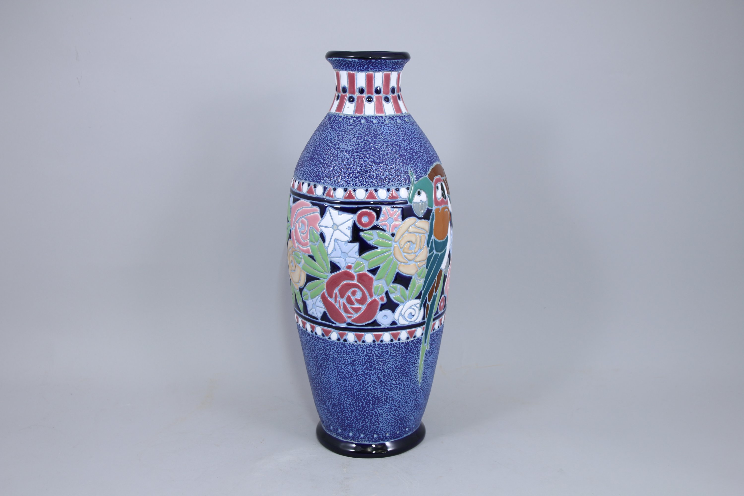 en céramique émaillée polychrome à décors de fleurs art déco. Porte un cachet "Made in czechoslovakia".