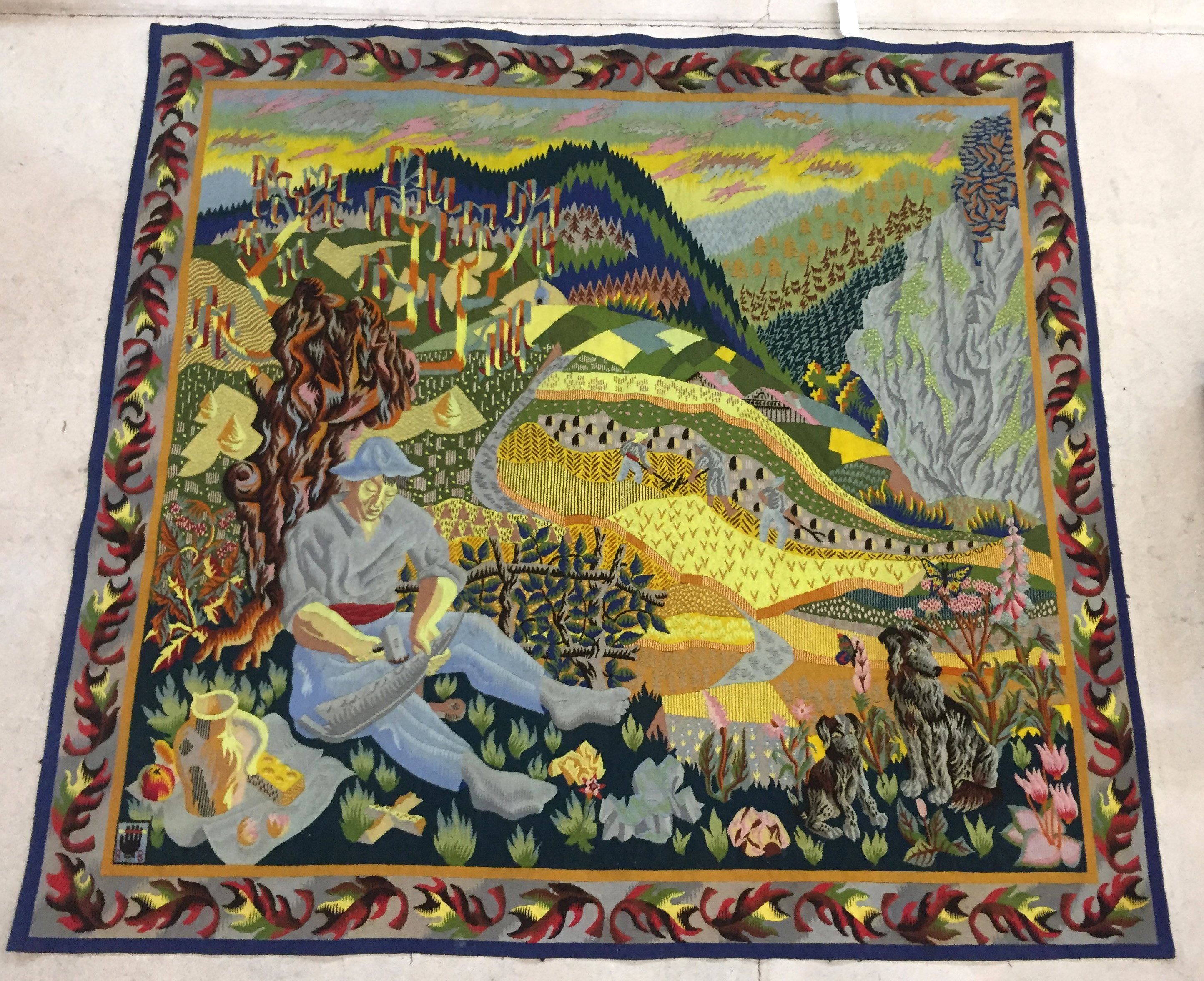 René PERROT (1912-1979)Le marteleur sur la colline.Tapisserie en laine polychrome....