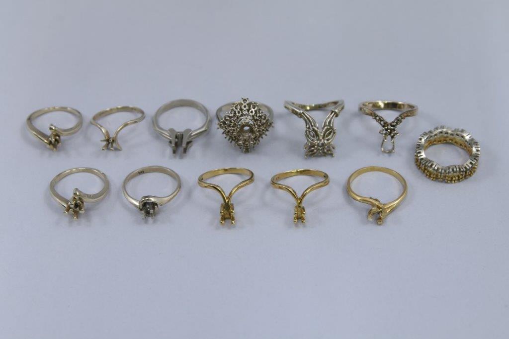 LOT de douze MONTURES de BAGUES en or jaune et gris 750 millièmes de forme solitaire, dôme, alliance américaine.