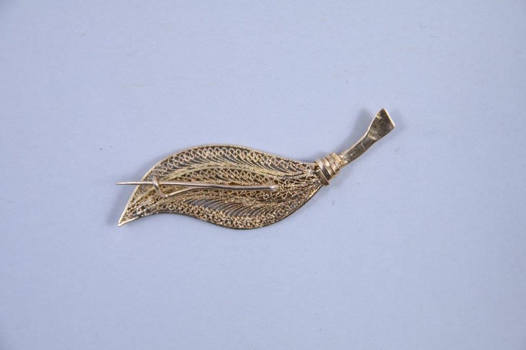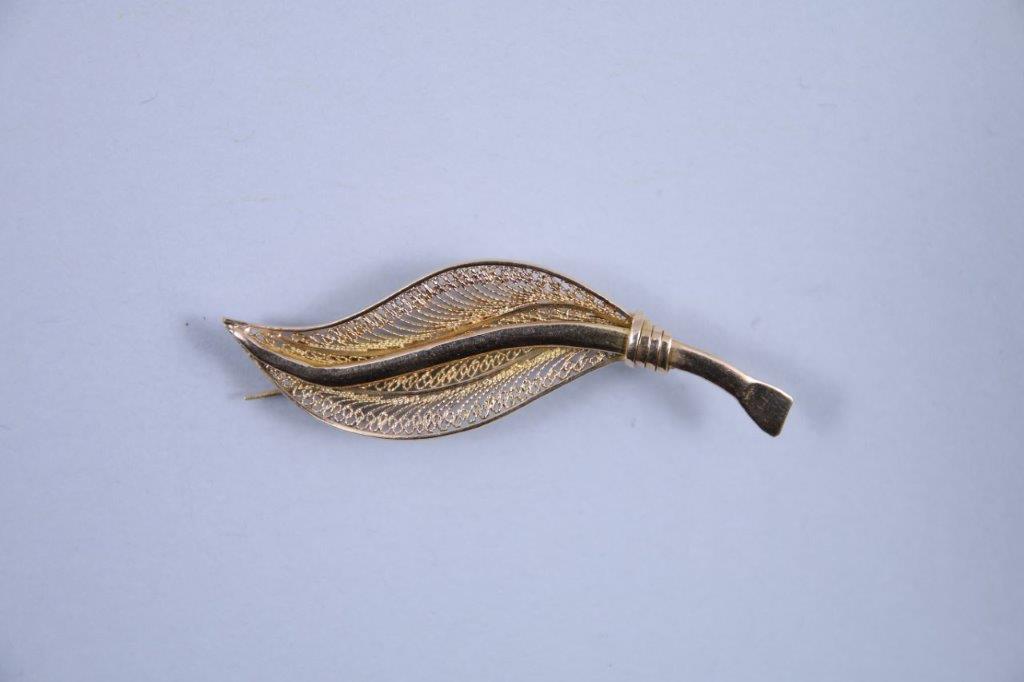 BROCHE FEUILLE en or jaune 750 millièmes réticulé.