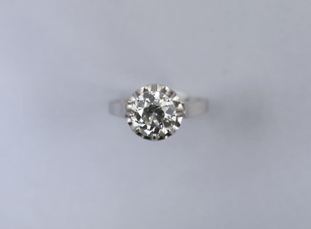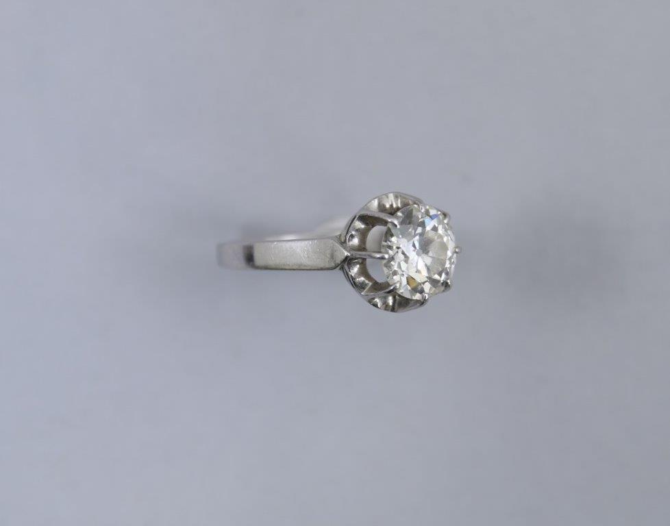 BAGUE en or gris 750 millièmes ornée au centre d'un diamant rond de taille ancienne (1,60/1,85 ct).