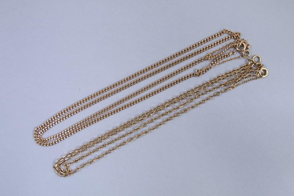 Deux CHAÎNES en or jaune 750 millièmes, ayant chacune une sécurité.