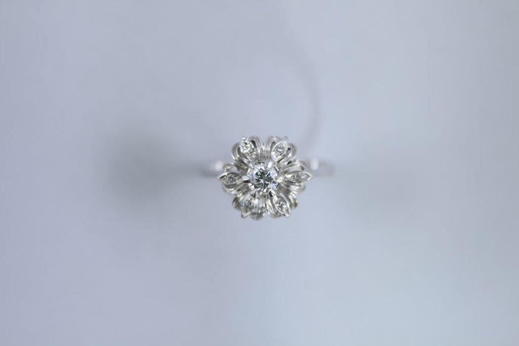 BAGUE MARGUERITE en or blanc 750 millièmes, ornée d'un DIAMANT central et de pétales sertis de brillants.
