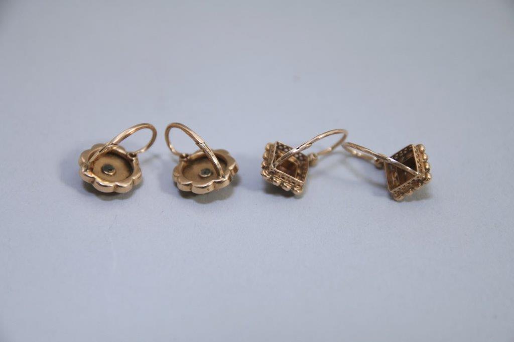 DEUX PAIRES de BOUCLES d'OREILLES DORMEUSES en or jaune 750...