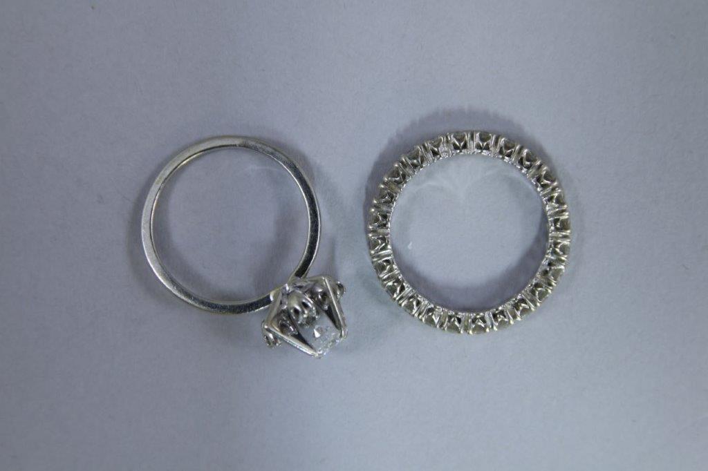 Deux BAGUES :- Une BAGUE en or gris 750 millièmes...