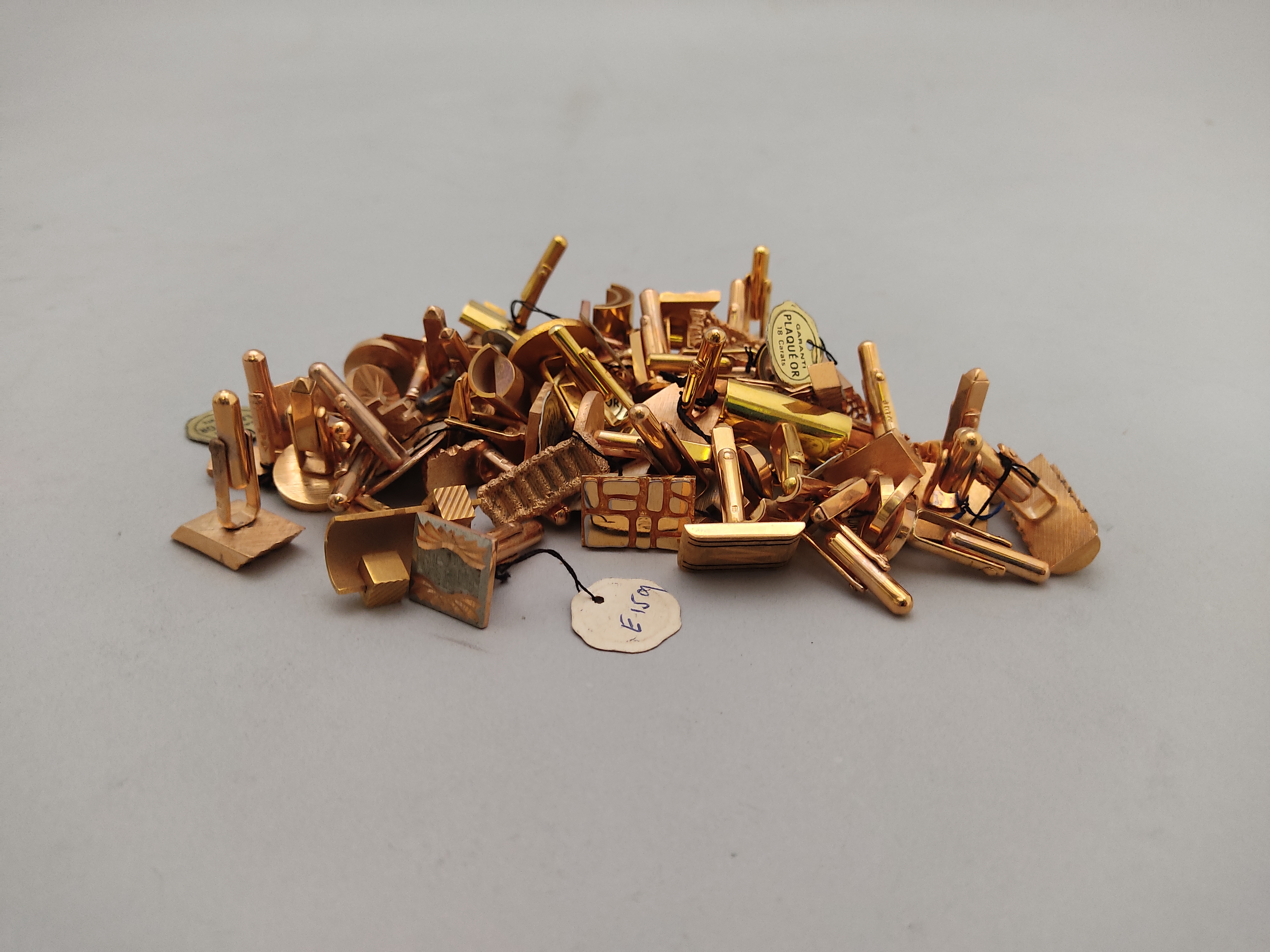 IMPORTANT LOT en MÉTAL DORÉ de boutons de manchettes, bracelets jonc...