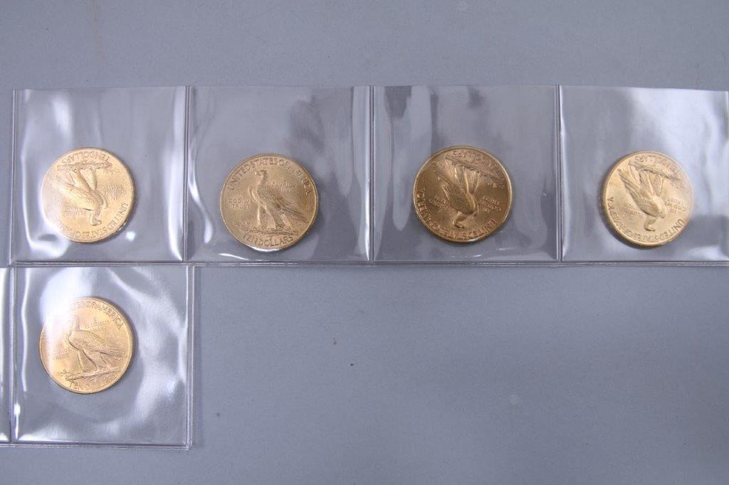 ÉTATS-UNIS. 5 PIÈCES 10 DOLLARS OR. 1 x 1908, 2 x 1909, 1 x 1910, 1 x 1932.