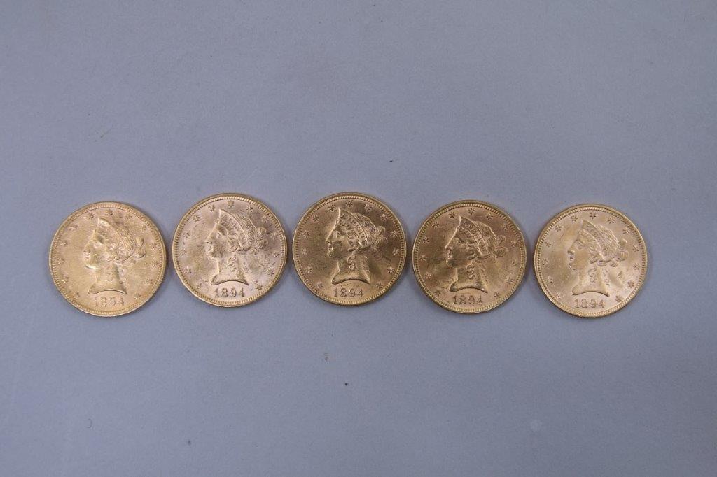 ÉTATS-UNIS. 5 PIÈCES 10 DOLLARS OR. 1894.