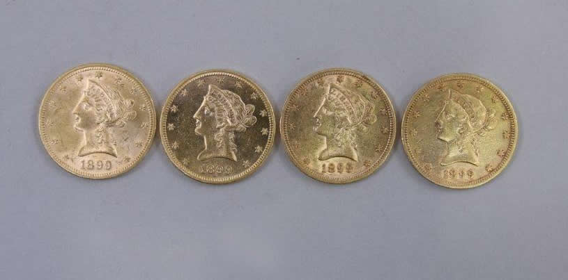 ÉTATS-UNIS. 4 PIÈCES 10 DOLLARS OR. 1899.