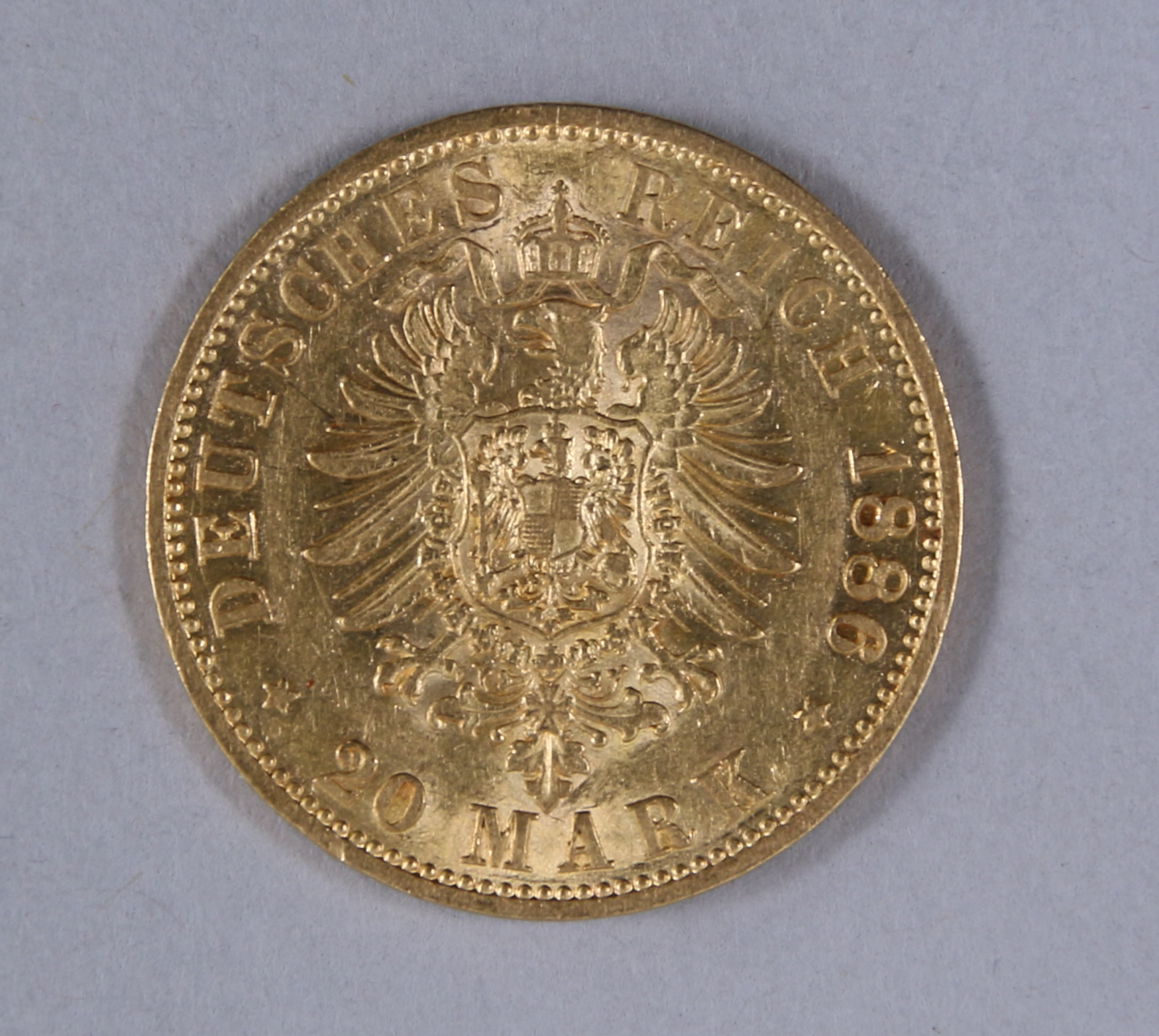 ALLEMAGNE. 1 PIÈCE 20 DEUTSCHE MARK OR. Guillaume II. 1886.
