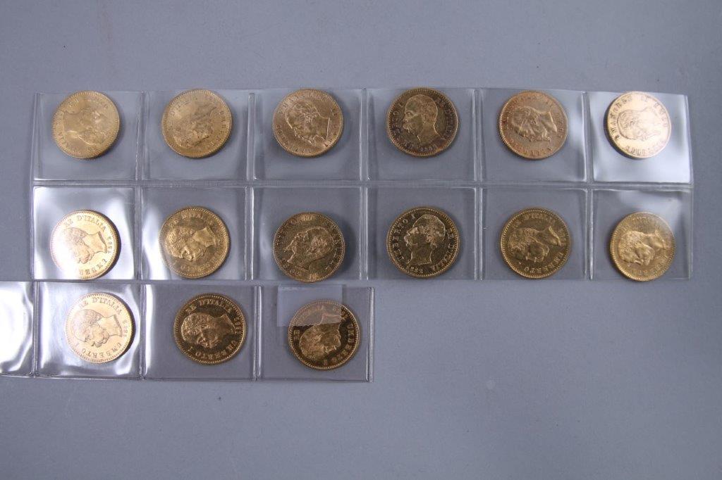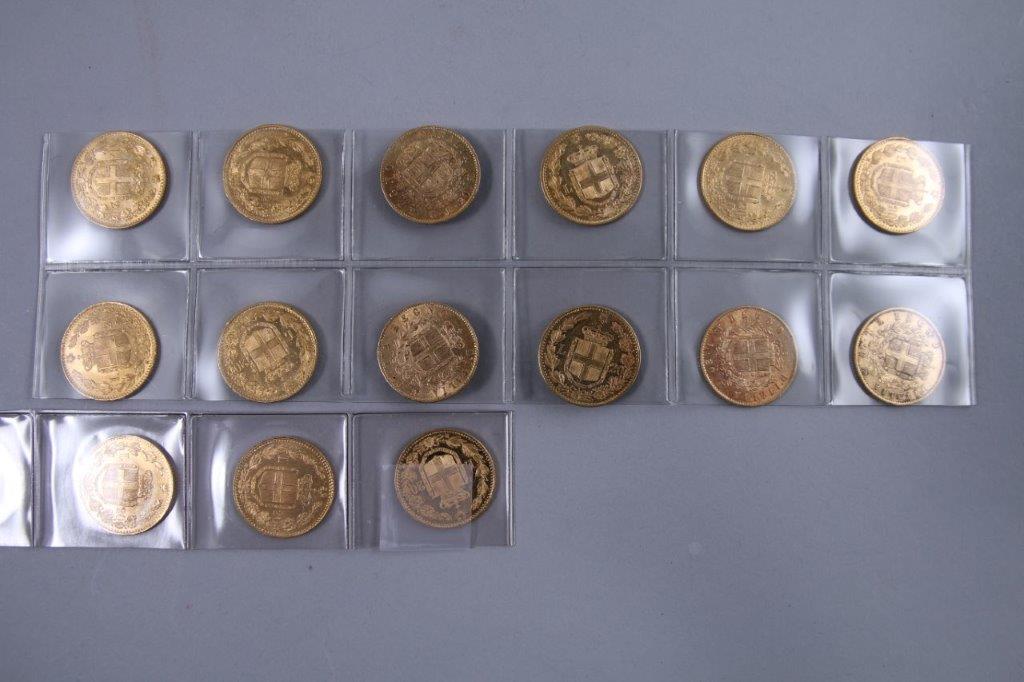 ITALIE. 15 PIÈCES 20 FRANCS OR UNION LATINE. 1 x 1863, 1 x 1865, 1 x 1869, 1 x 1873, 11 x 1882.