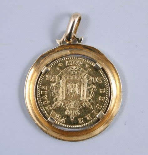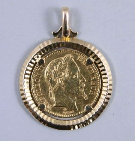 FRANCE. 1 PIÈCE 20 FRANCS OR. Napoléon III (1867), montée en pendentif.