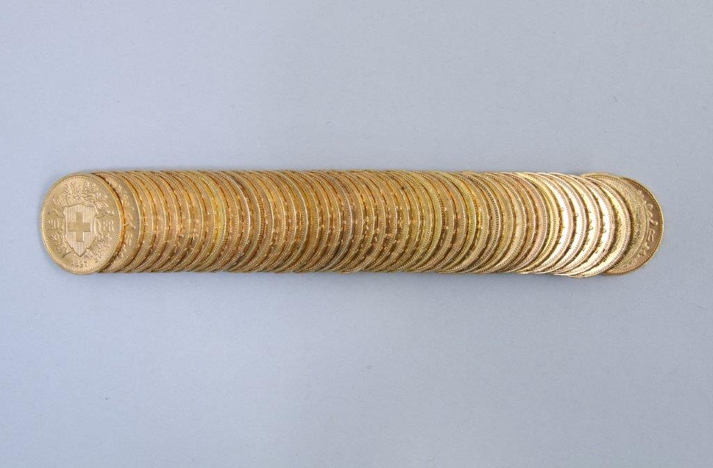 SUISSE. 45 PIÈCES de 20 FRANCS OR.