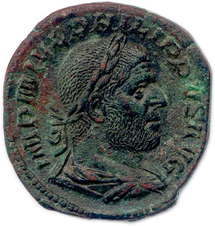 Sesterce (grand bronze) frappé à Rome en 249. (22,94 g)