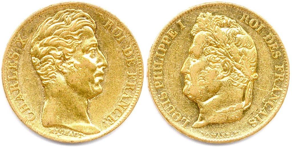 CHARLES X et LOUIS-PHILIPPE Ier Ensemble de deux monnaies en...