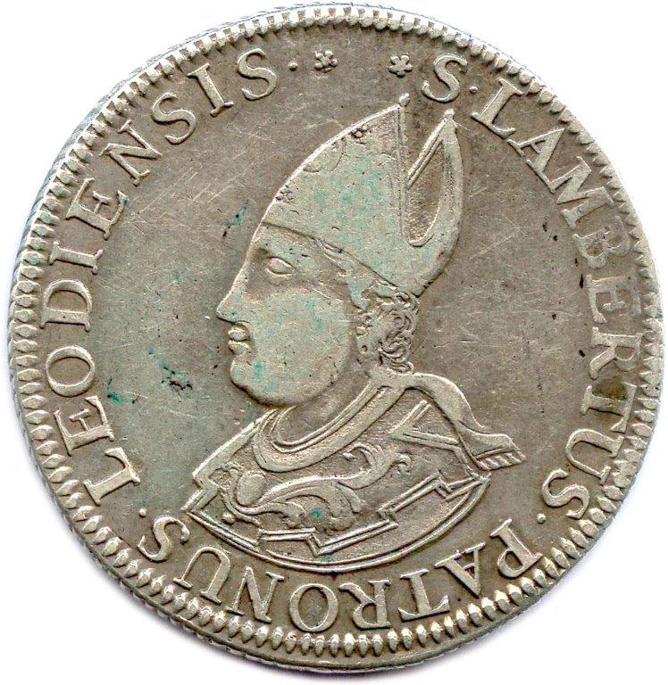Buste de Saint Lambert. R/. Armoiries sur un manteau d’hermine. Au-dessus, date 17-24.