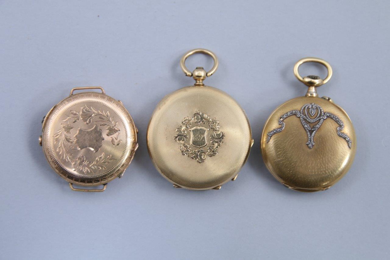Trois MONTRES de COL en or 750 millièmes de forme circulaire: