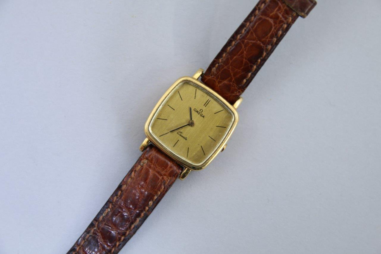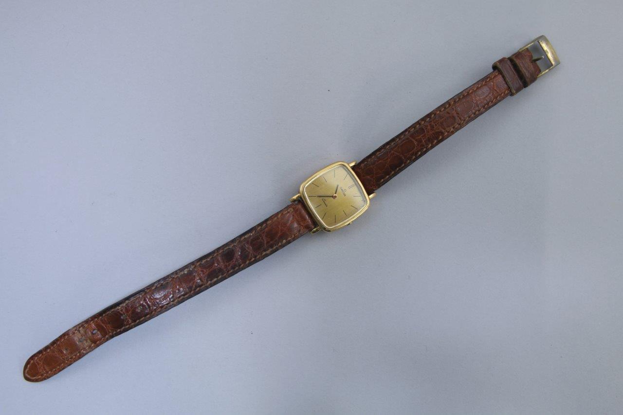 OMEGA. MONTRE BRACELET de DAME en or jaune 750 millièmes. Le cadran gradué pour les heures, mouvement à quartz (bouton accidenté).