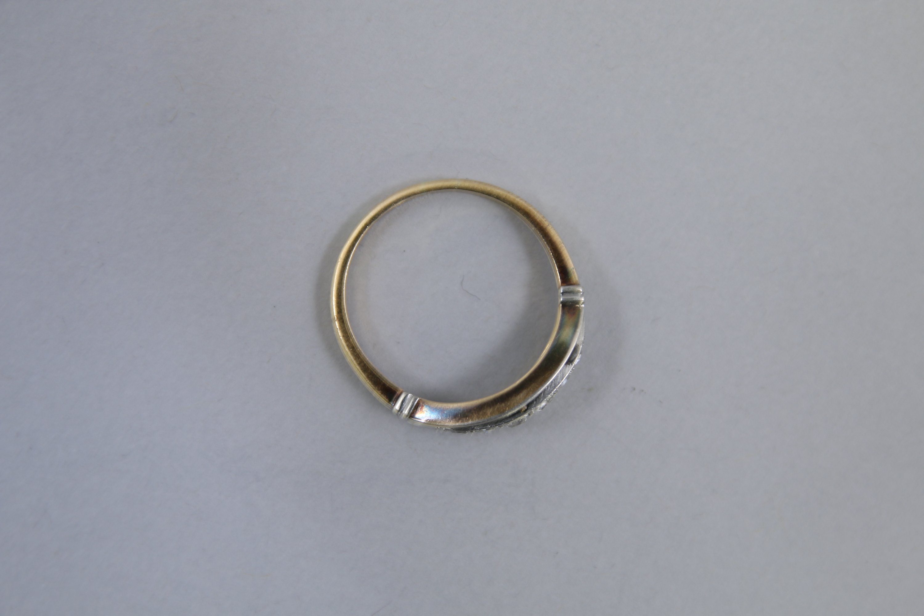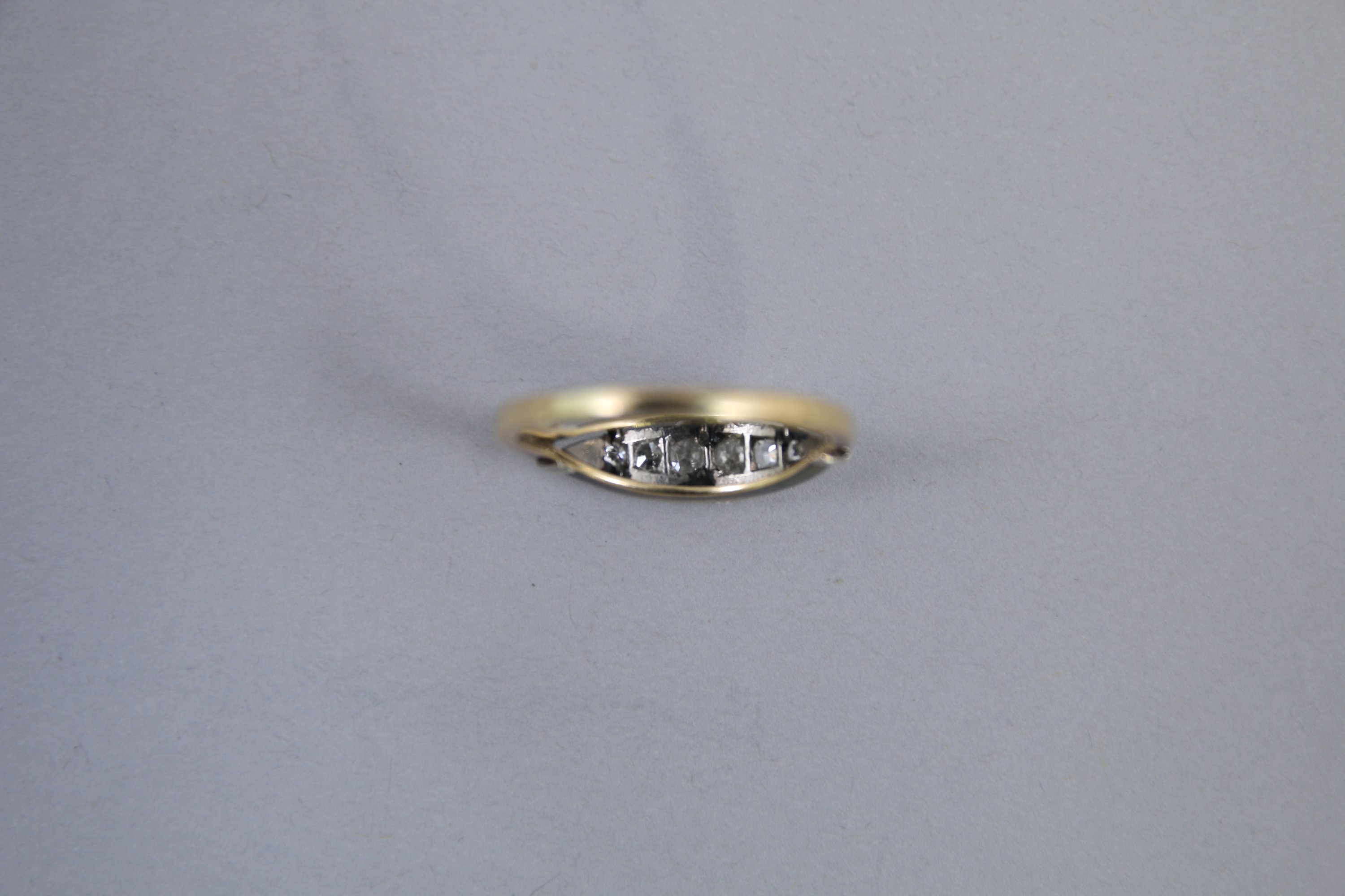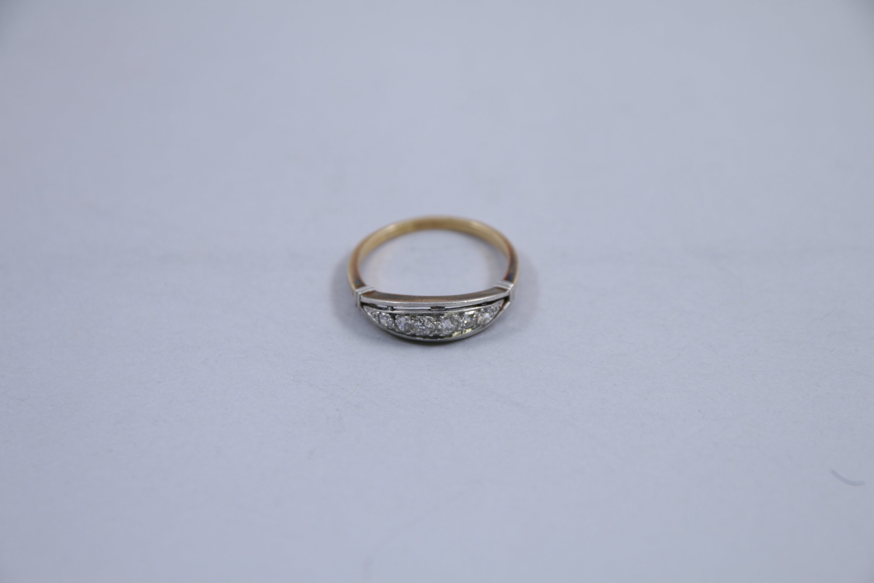 BAGUE aux deux or jaune et gris 750 millièmes ornée de six DIAMANTS.