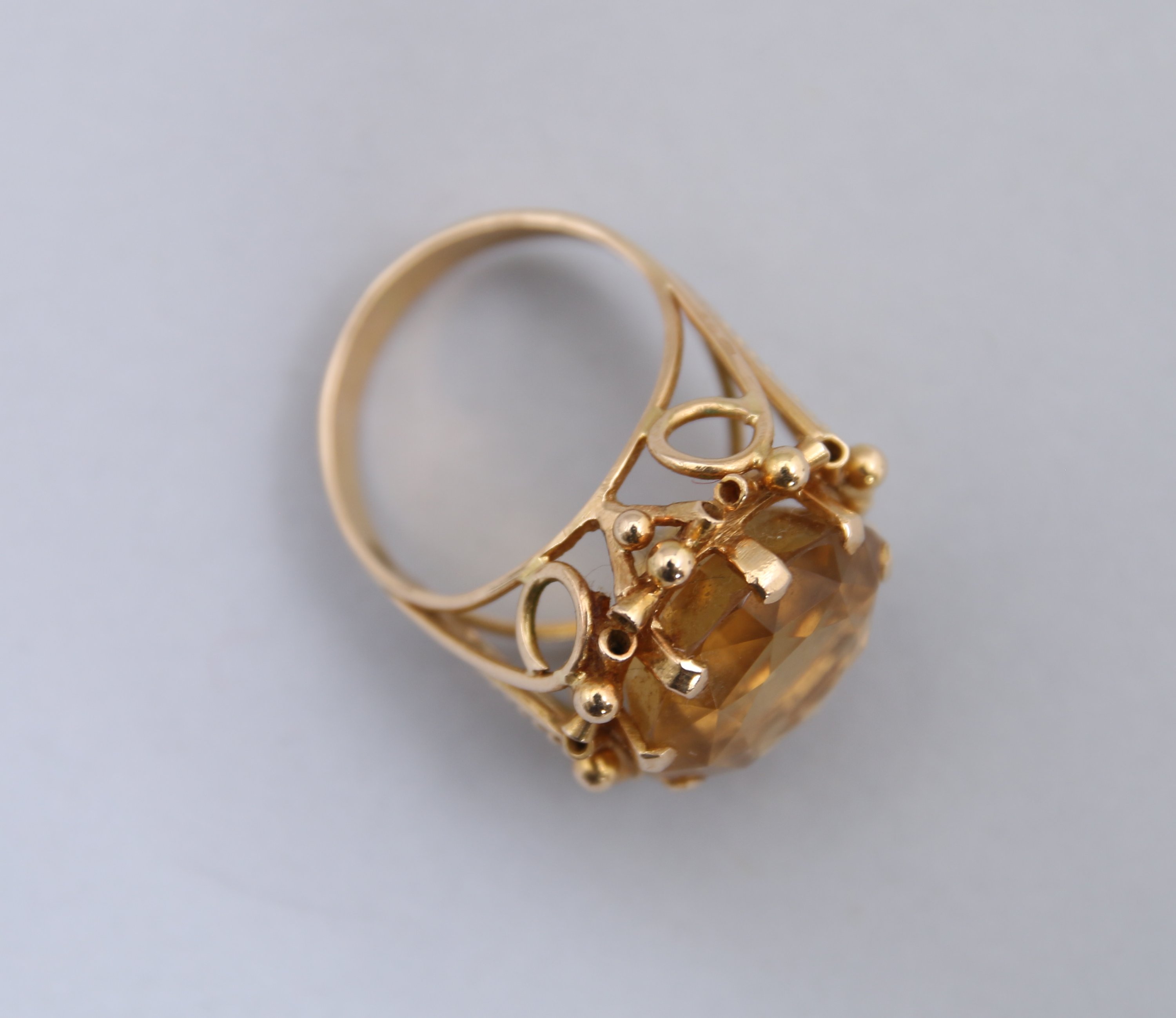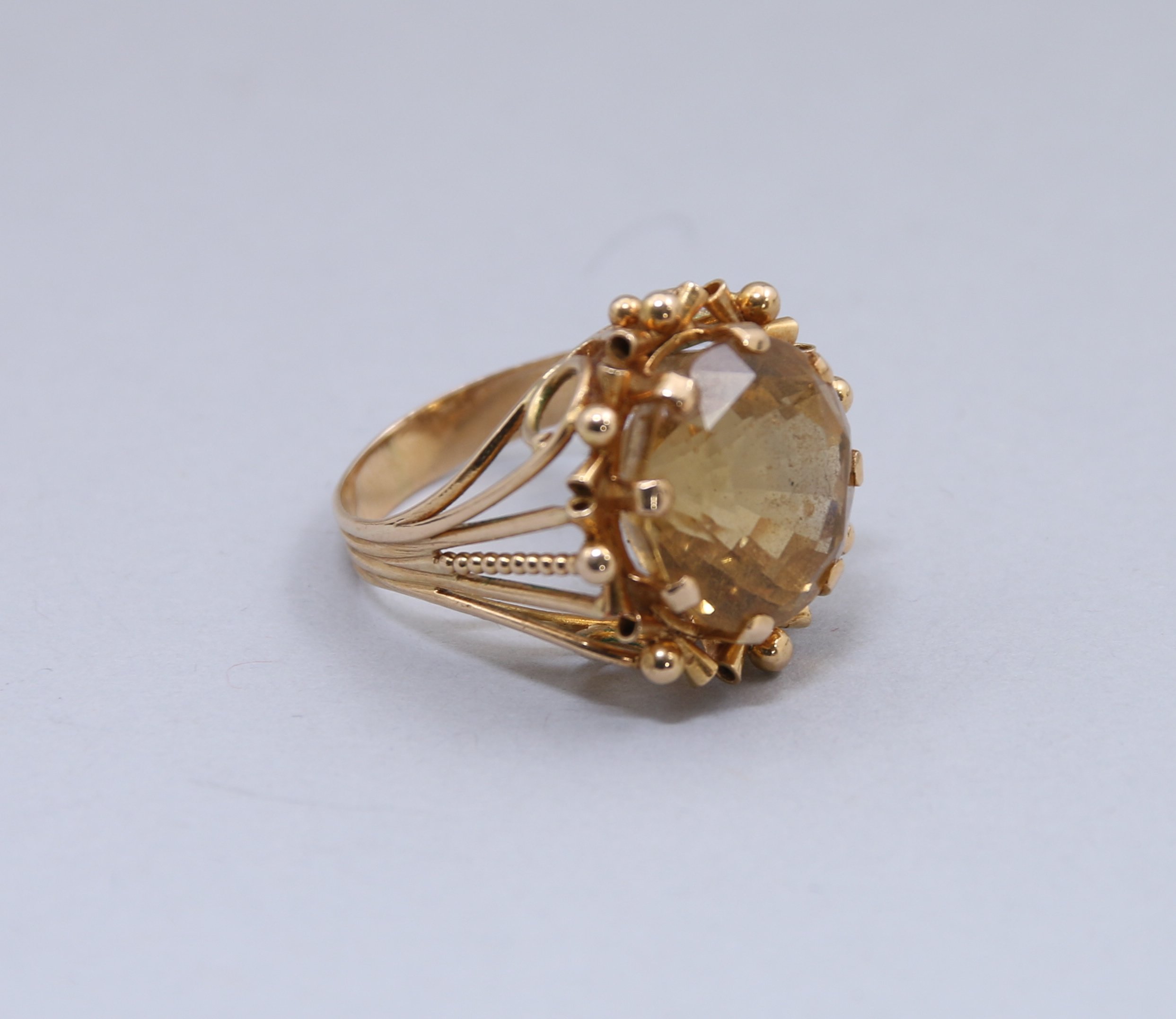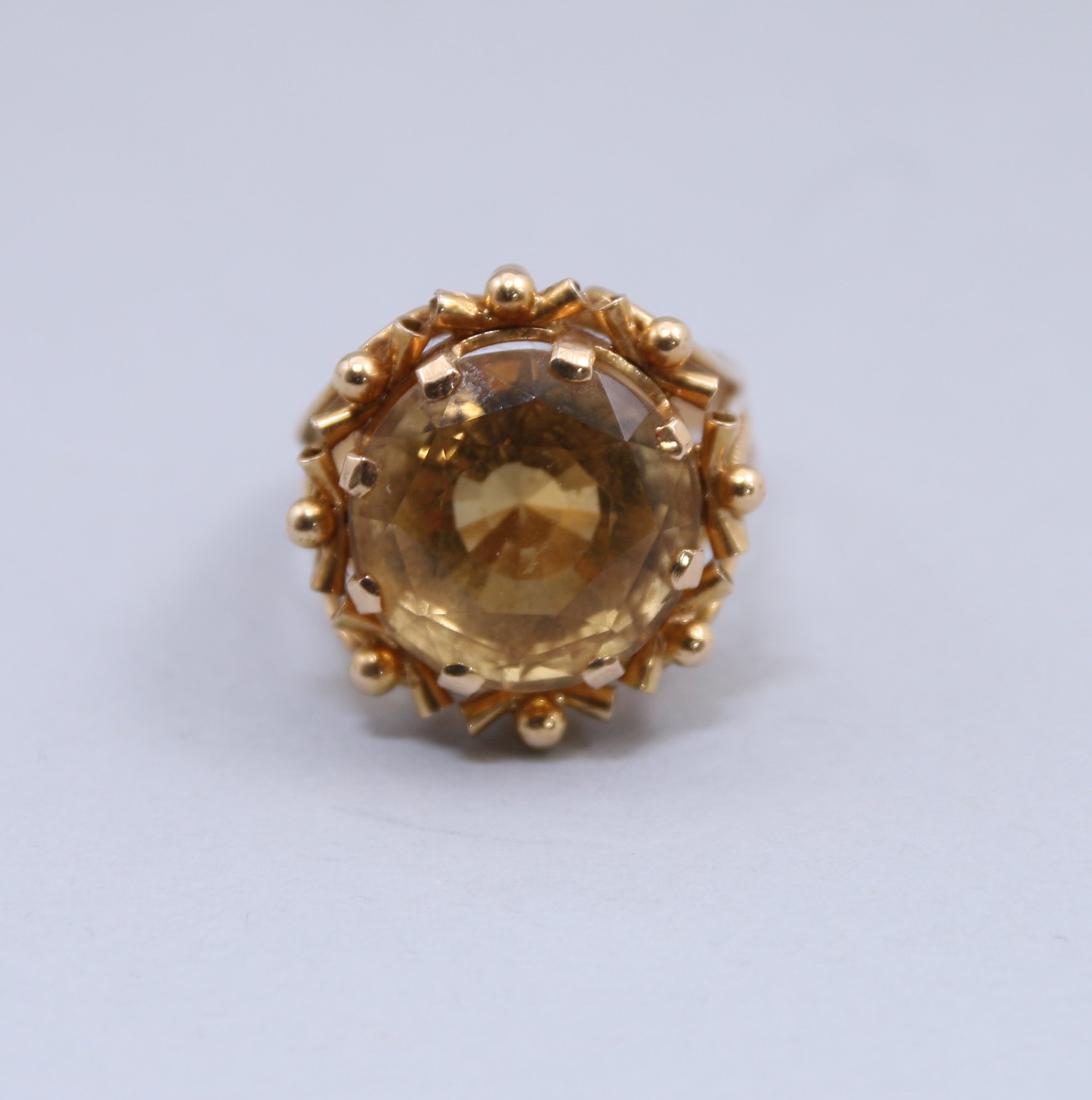 BAGUE en or jaune 750 millièmes ornée d'une citrine de forme ronde montée en griffes.