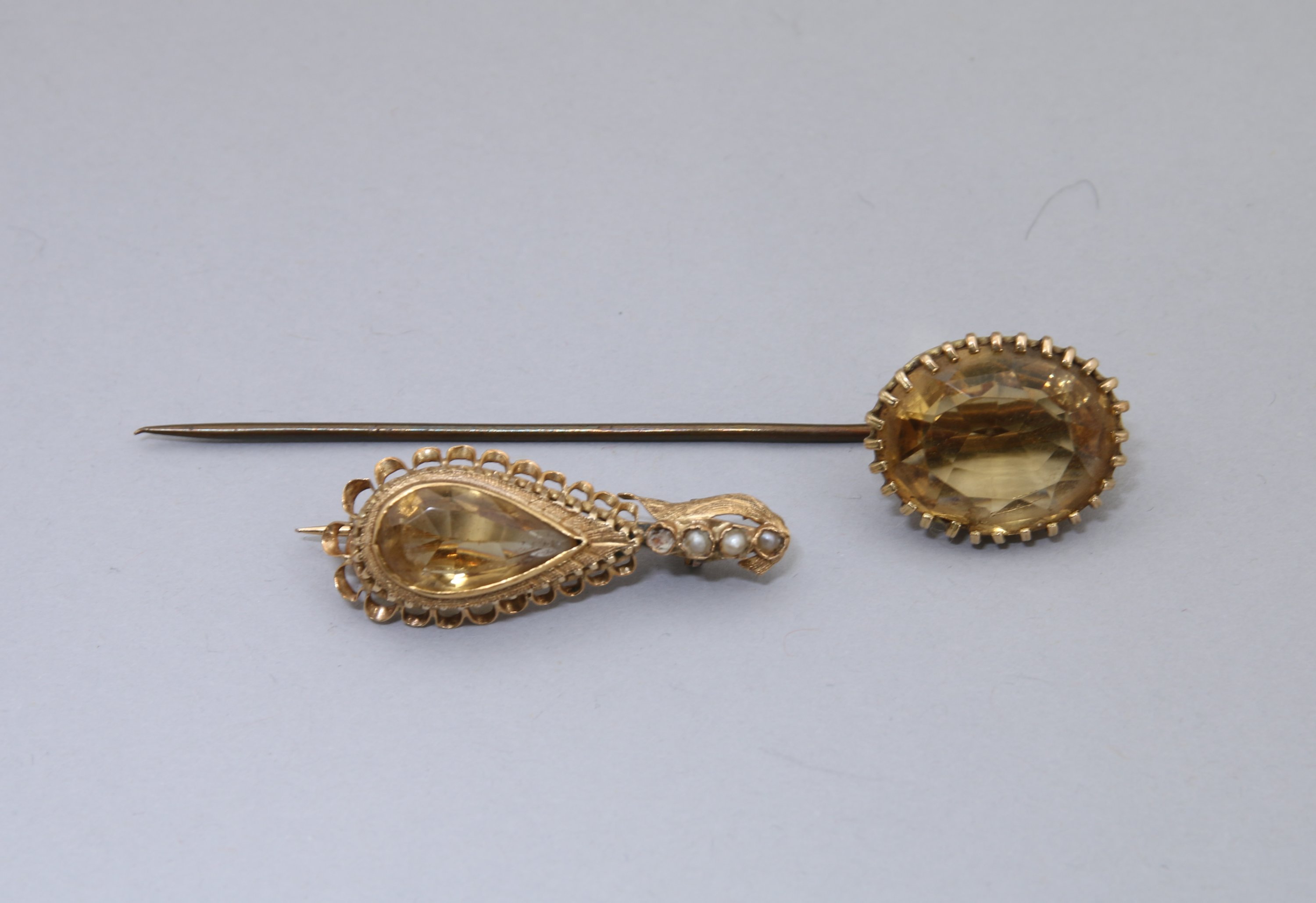 - Une BROCHE ornée d'une citrine en or jaune et métal.