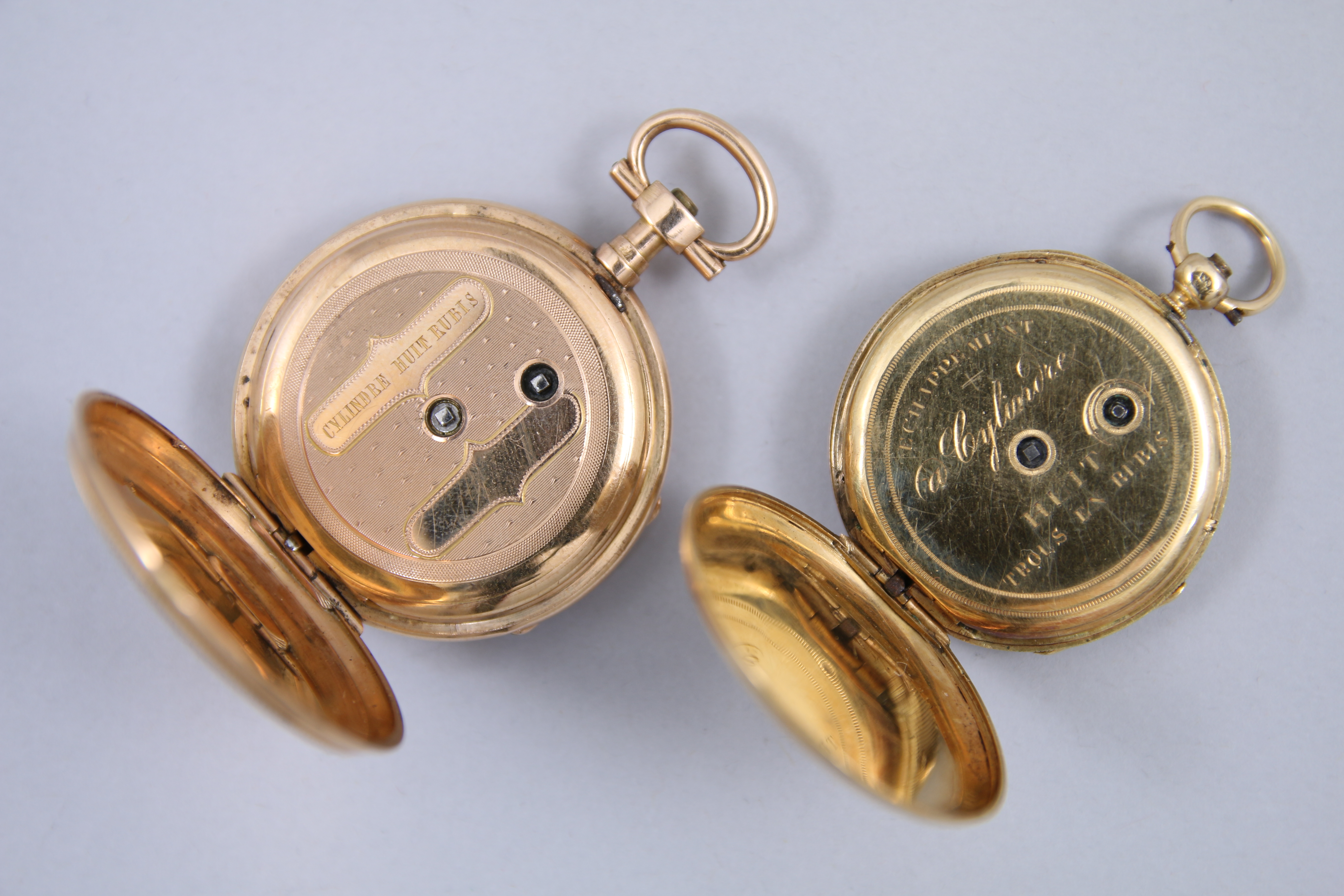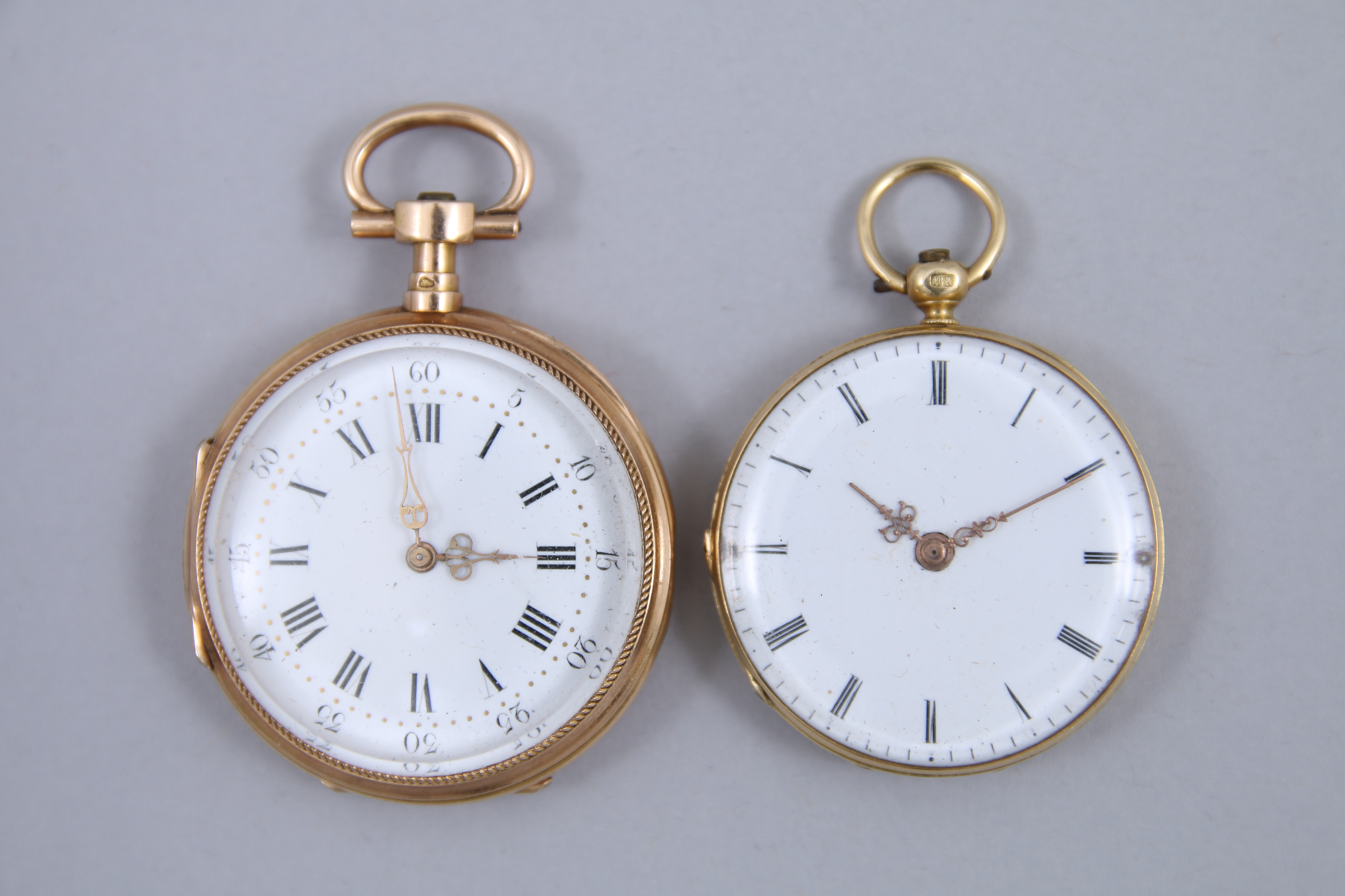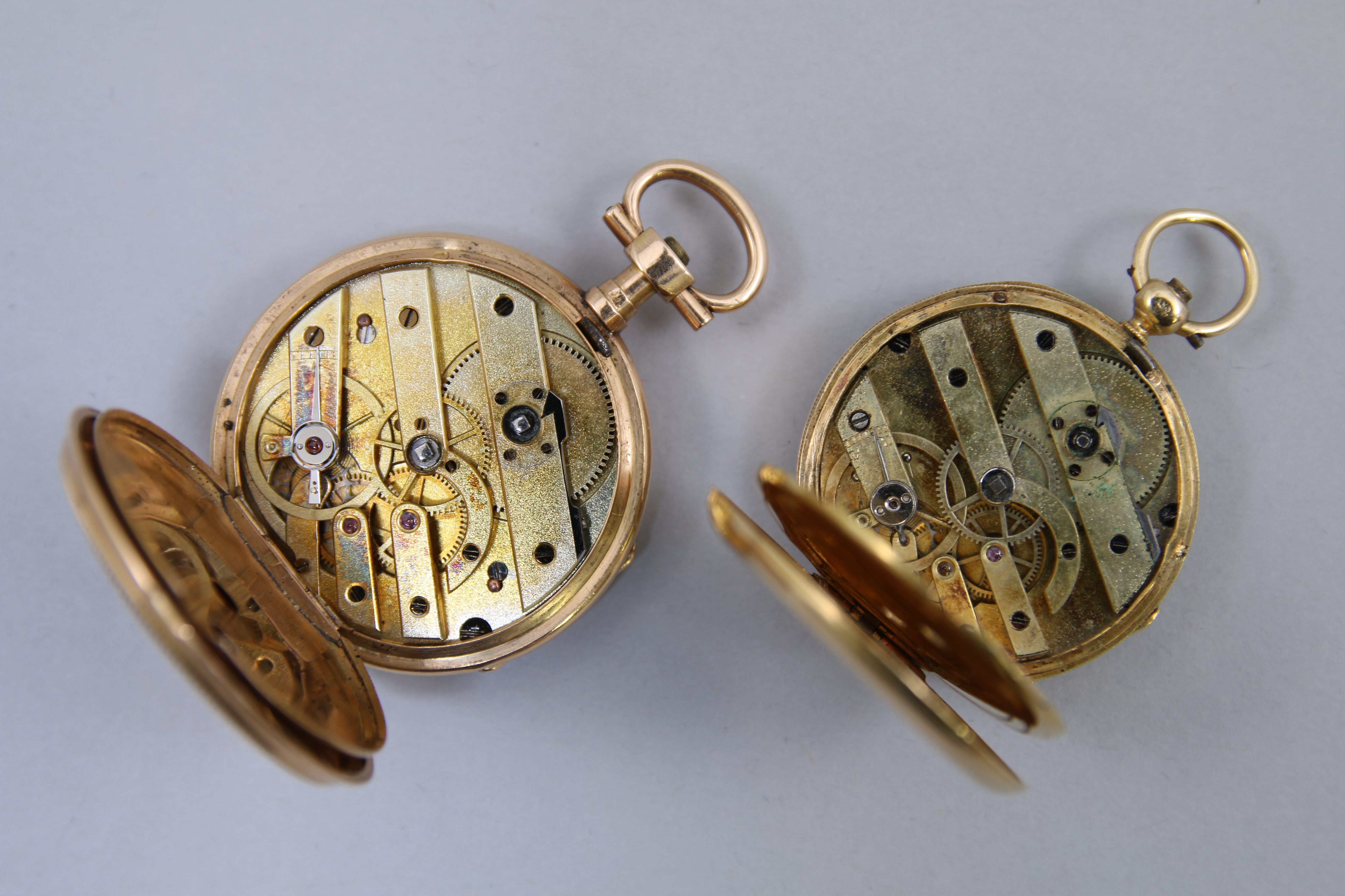 Deux MONTRES de COL en or jaune 750 millièmes à remontoirs.