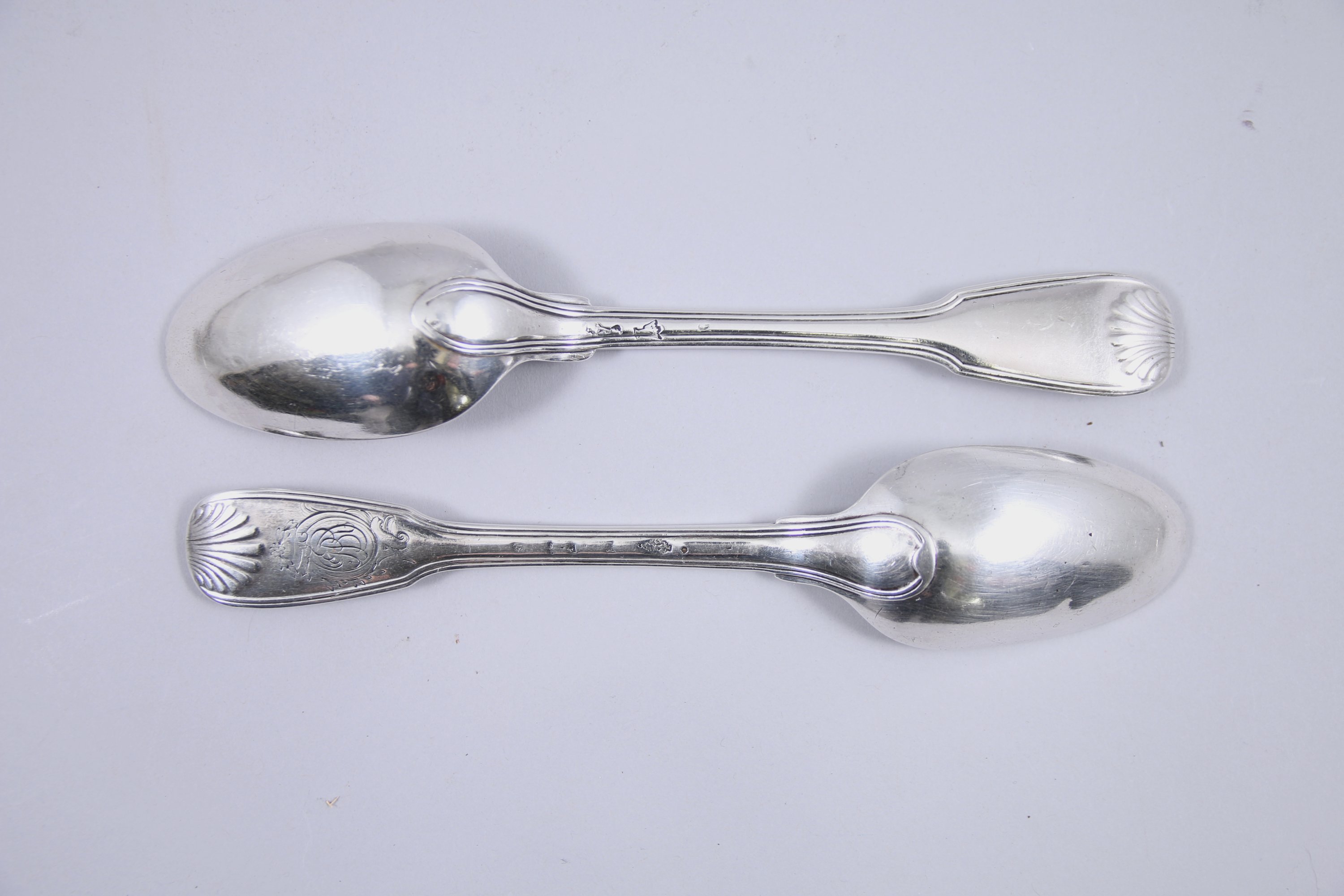 Deux CUILLERS en argent modèle filet coquille. L'une gravée de chiffres.