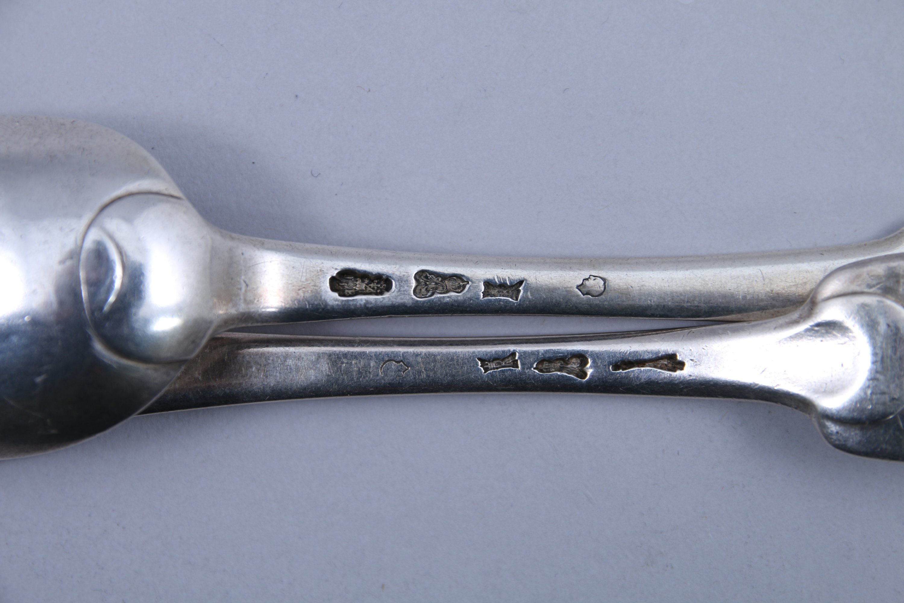 Trois COUVERTS et une FOURCHETTE en argent modèle uniplat. Ils...