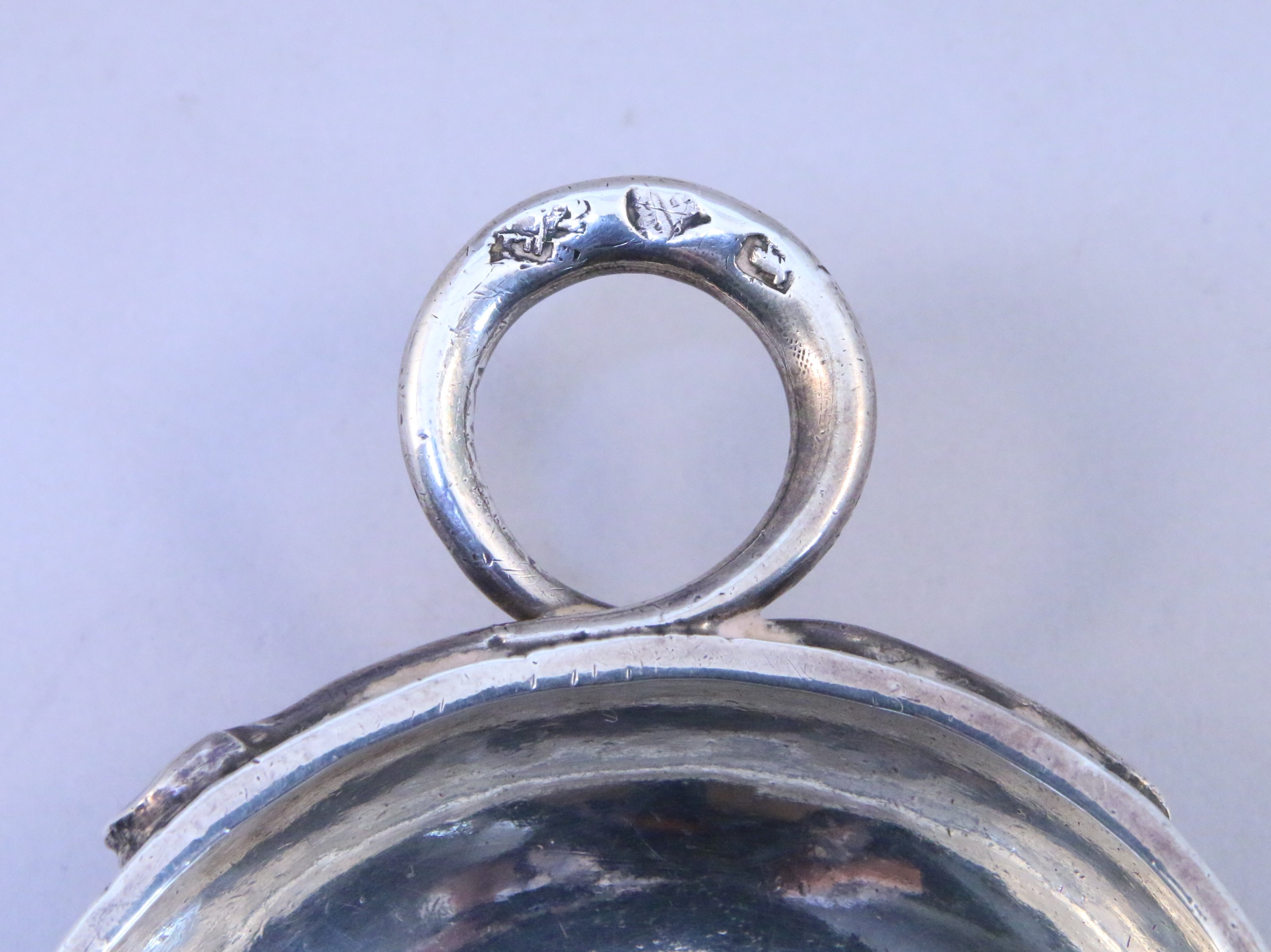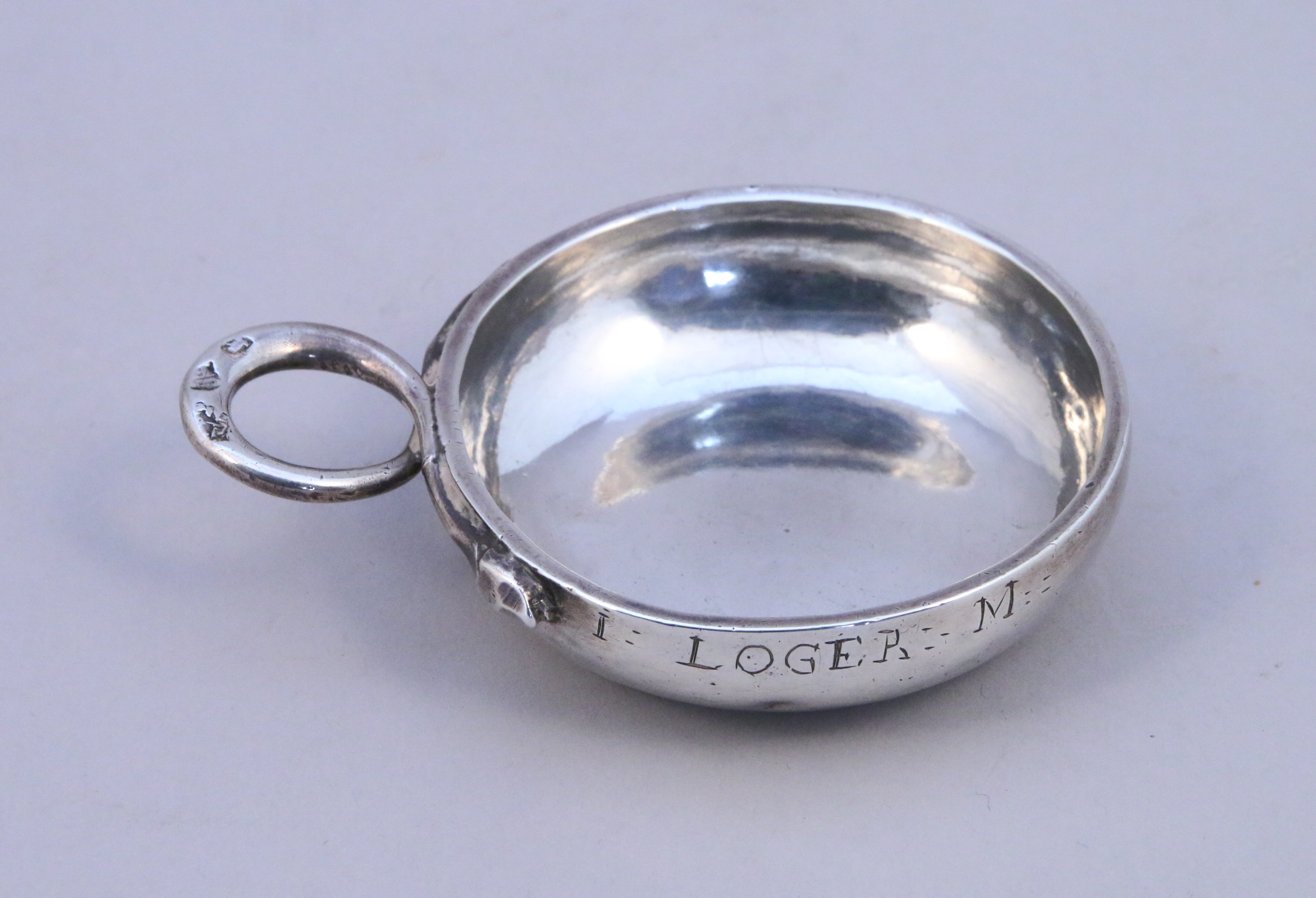 ANGERS. TASTEVIN en argent uni gravé " I LOGER M". Anse serpentiforme.