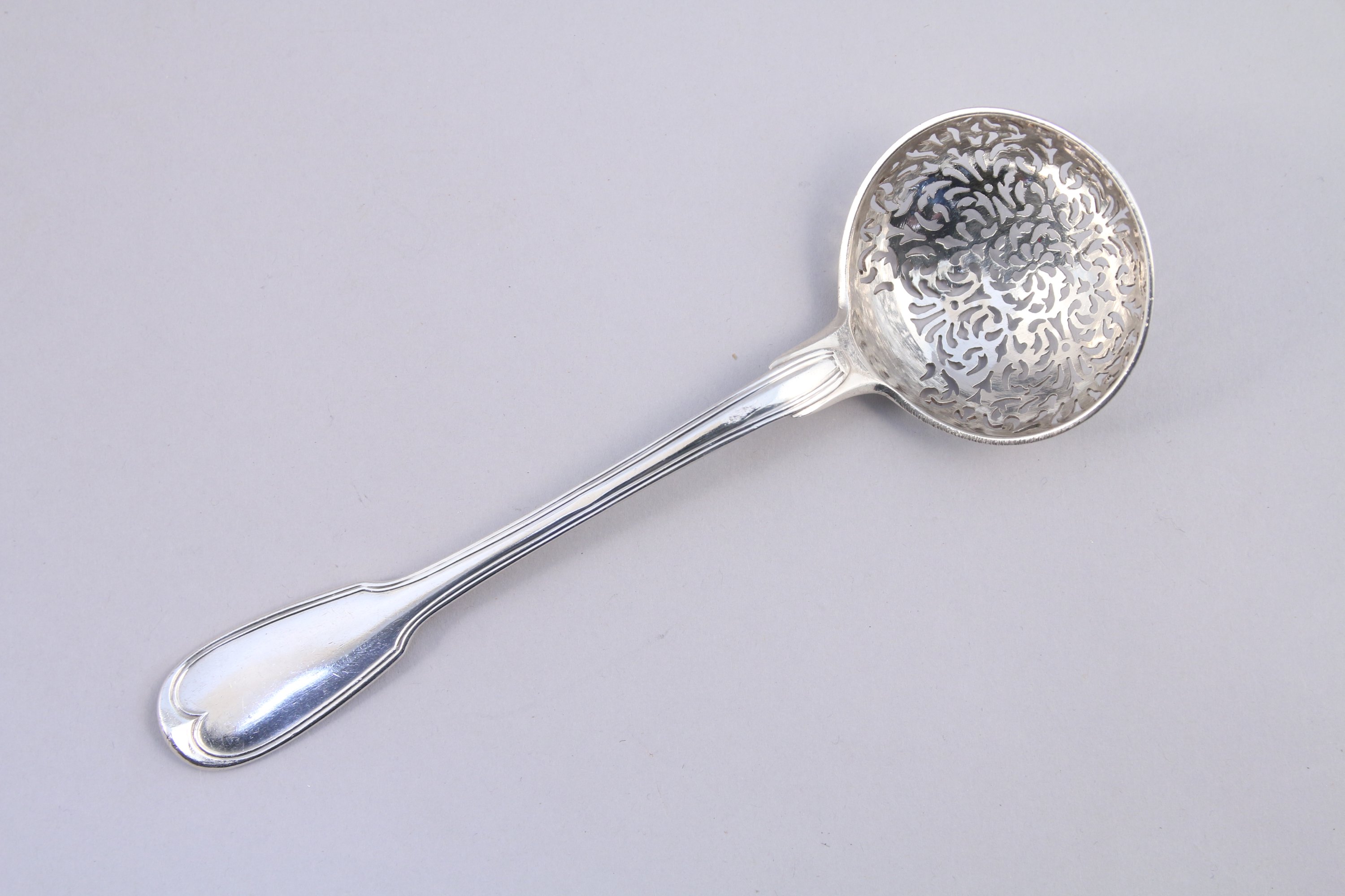 CUILLER à SAUPOUDRER en argent, modèle à filet.