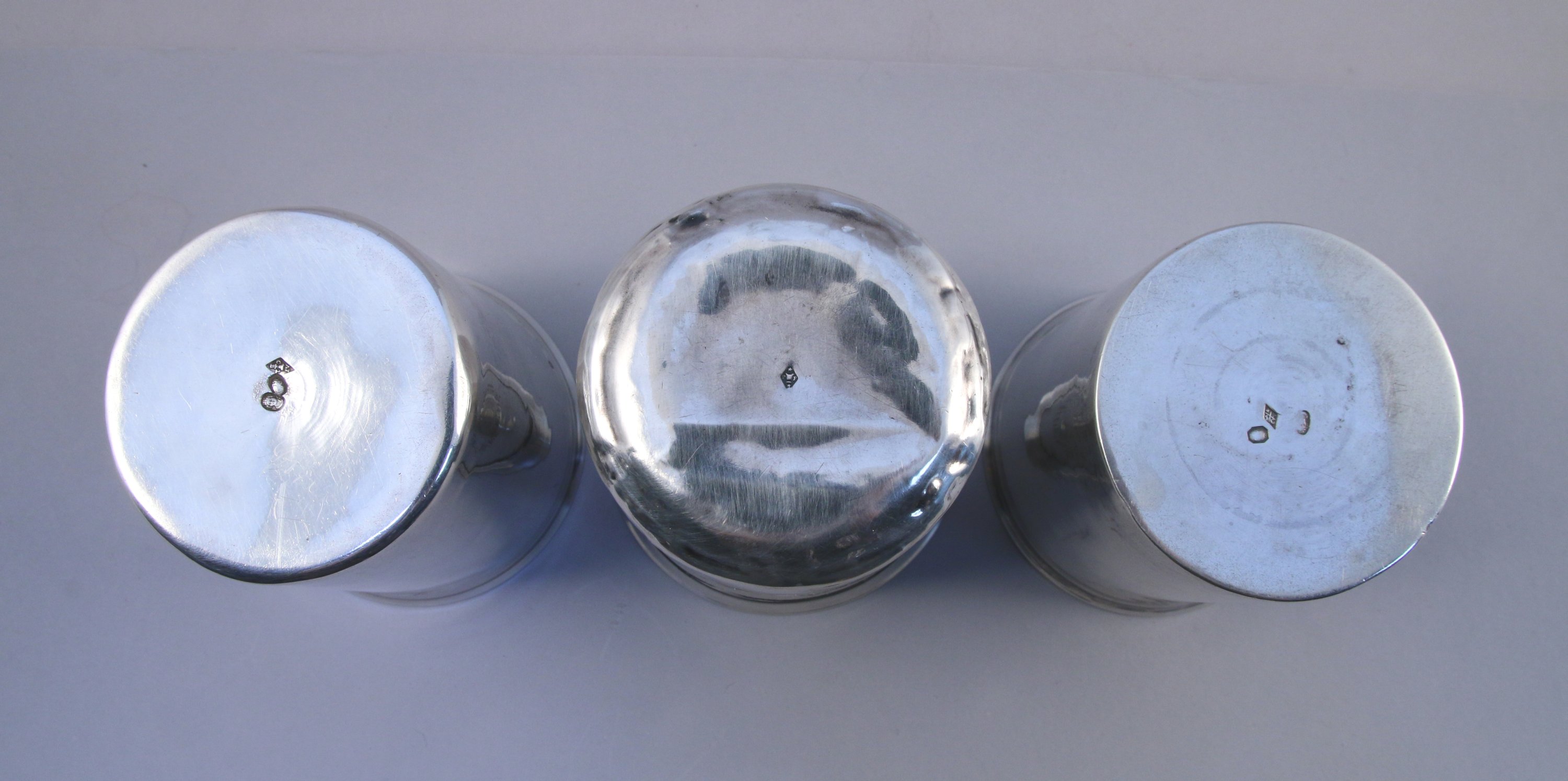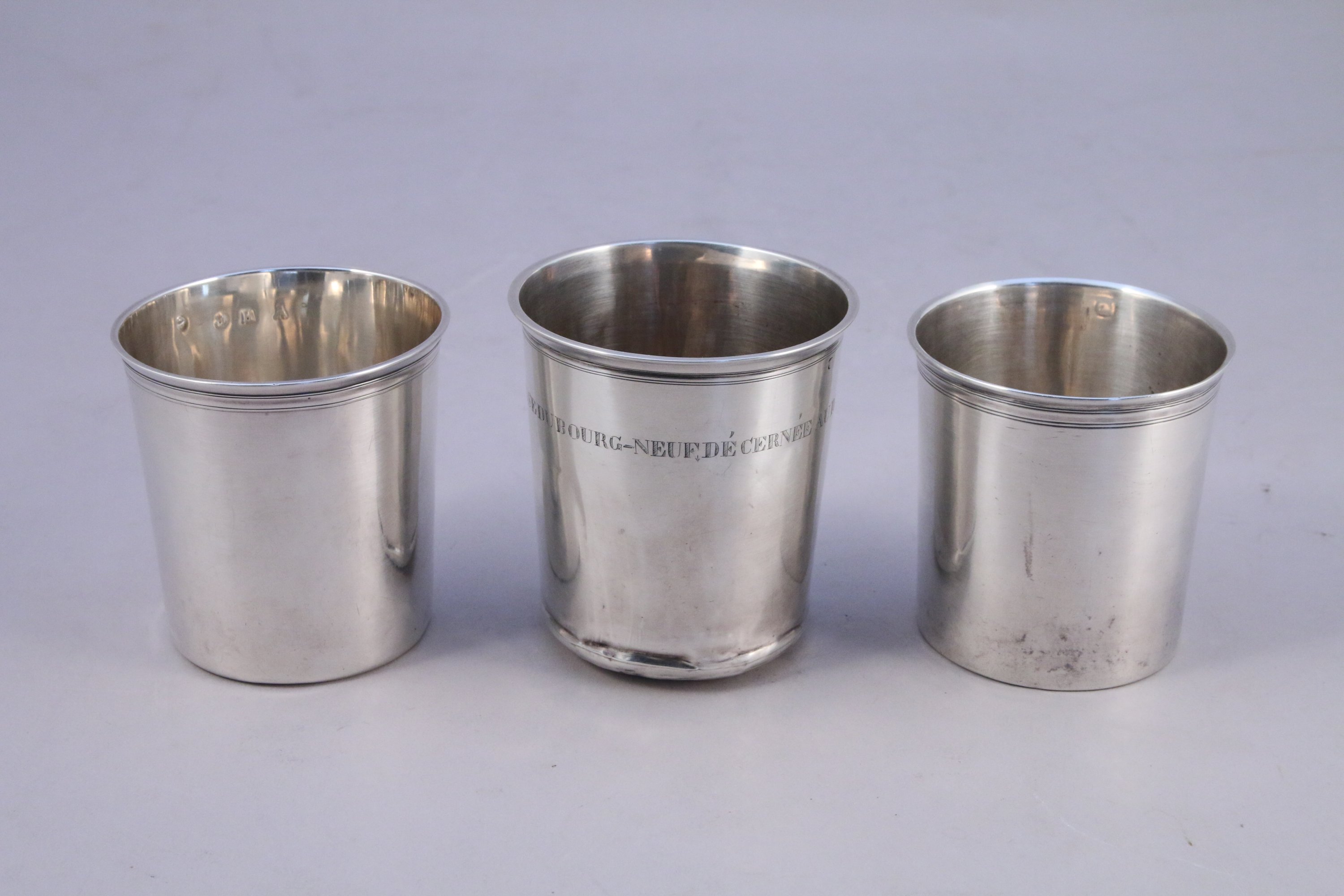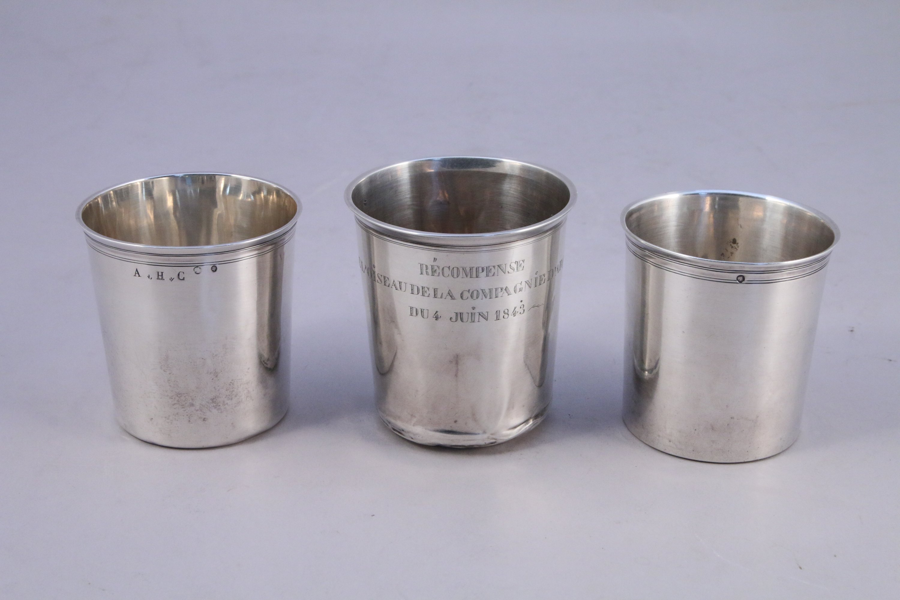 PARIS. RÉUNION de trois TIMBALES en argent.