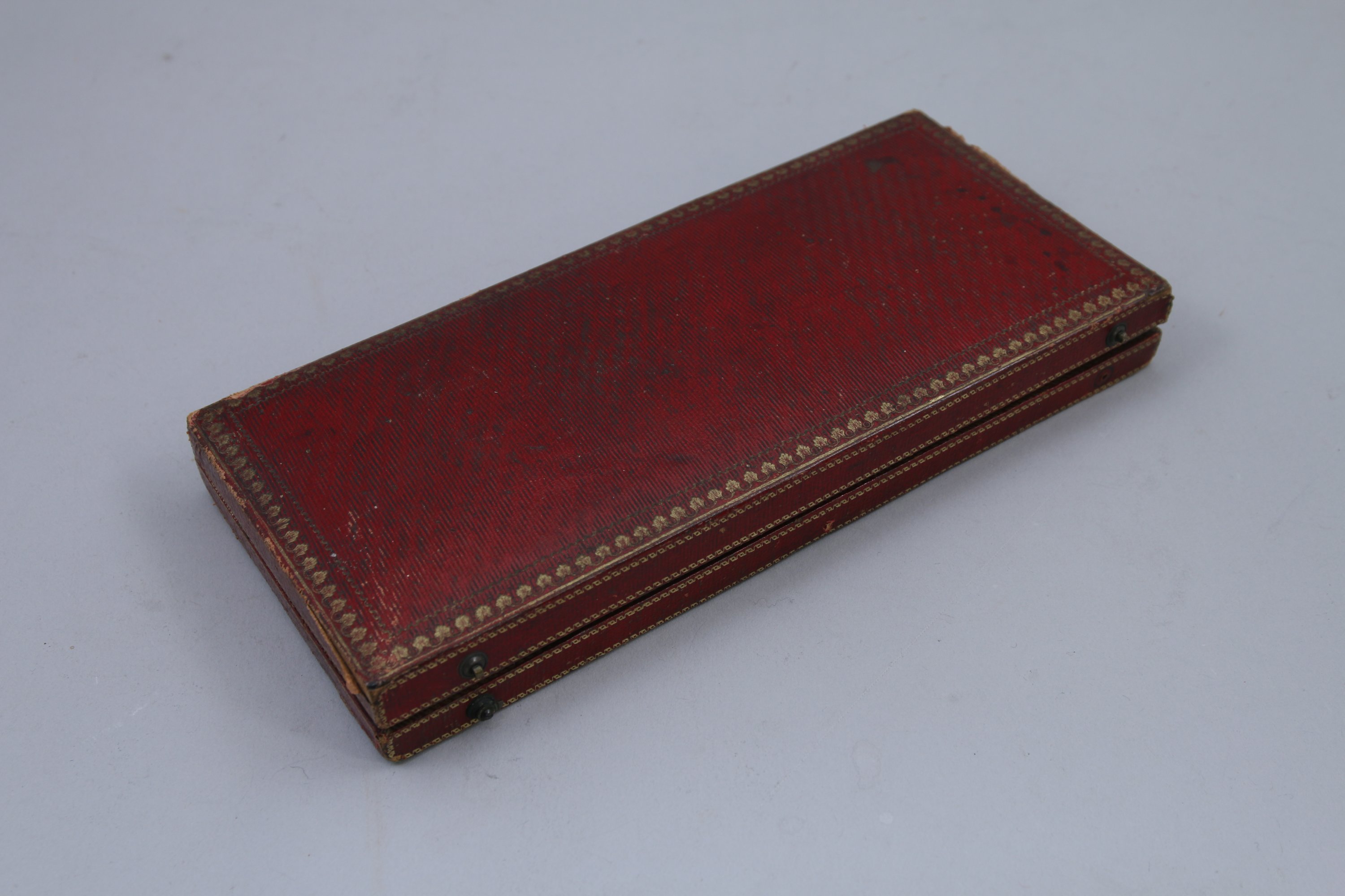 Dans son écrin foncé de maroquin accidenté.