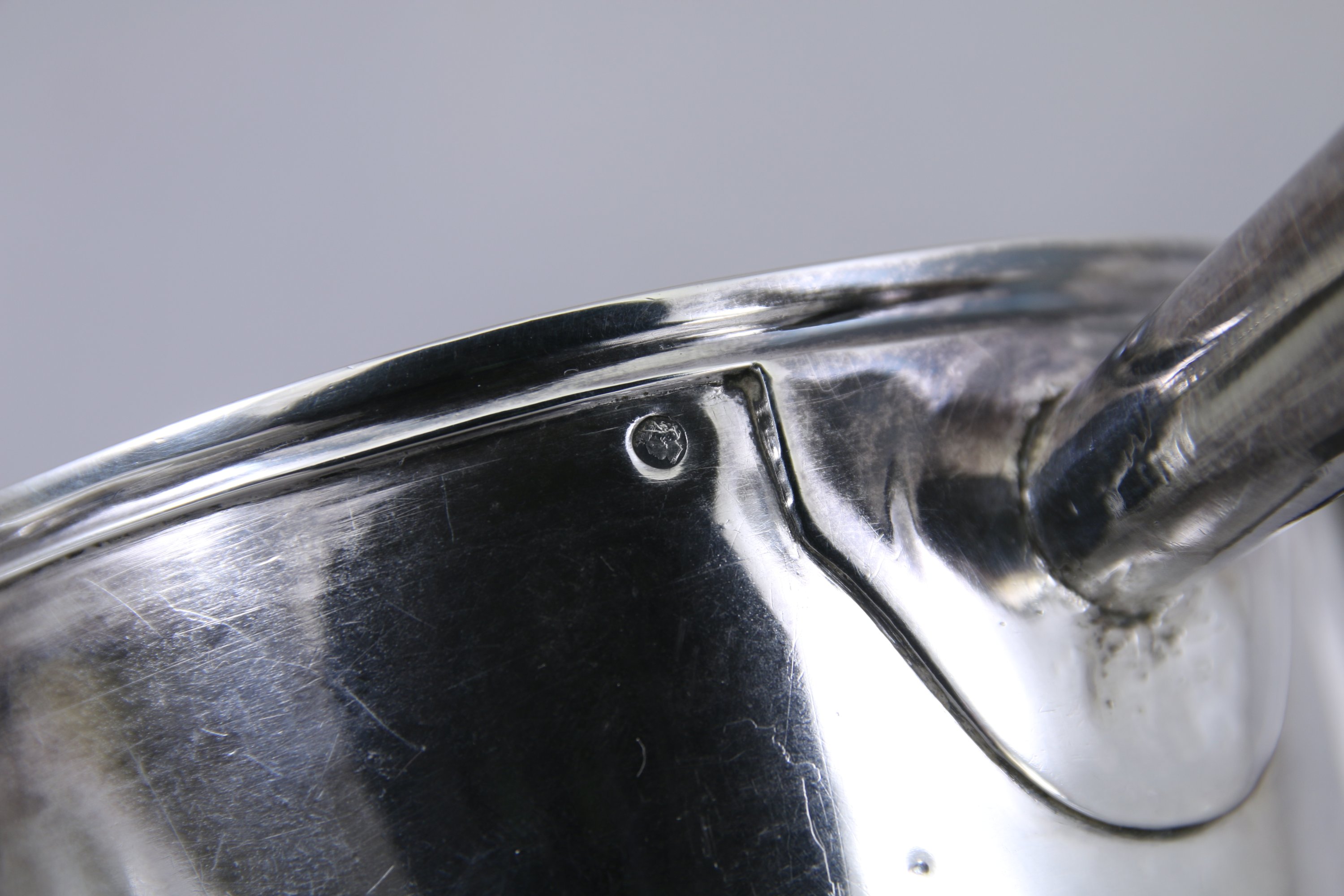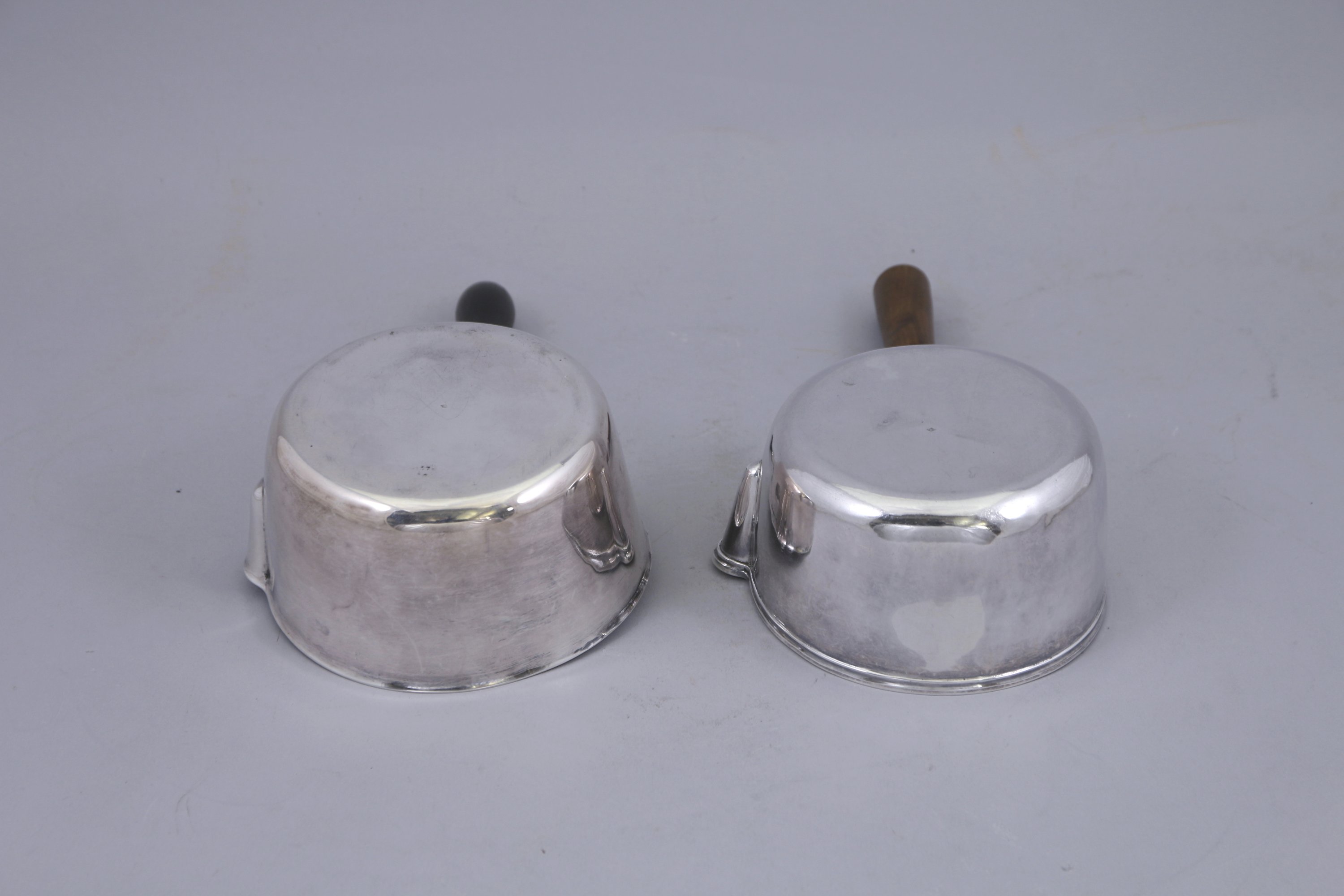 Deux petites CASSEROLES en argent uni, manche latéral en bois...