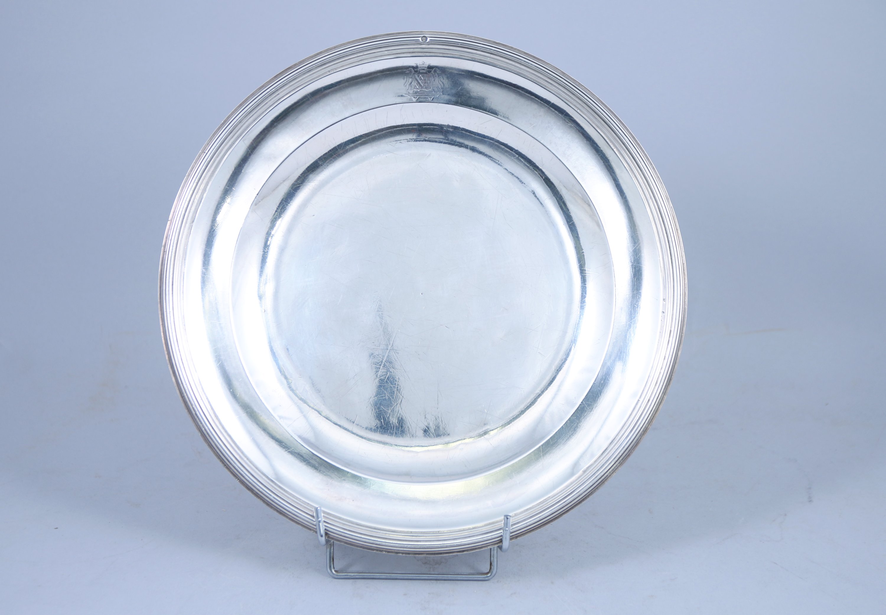 PLAT en argent modèle à filets. Orné d'un écu surmonté...