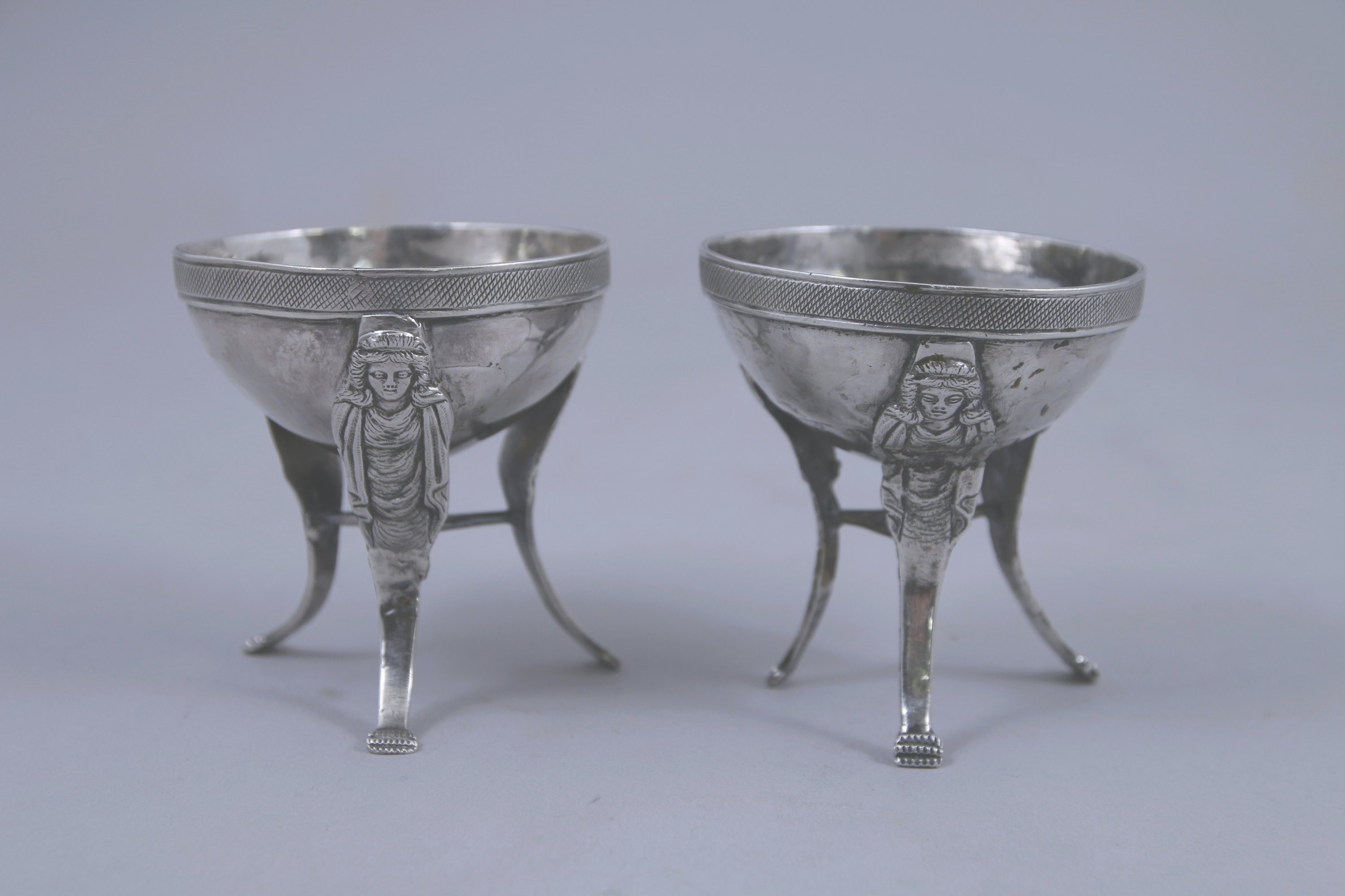 Demi SPHÈRES en argent tripode. Elles reposent sur des personnages en gaine posés en applique.