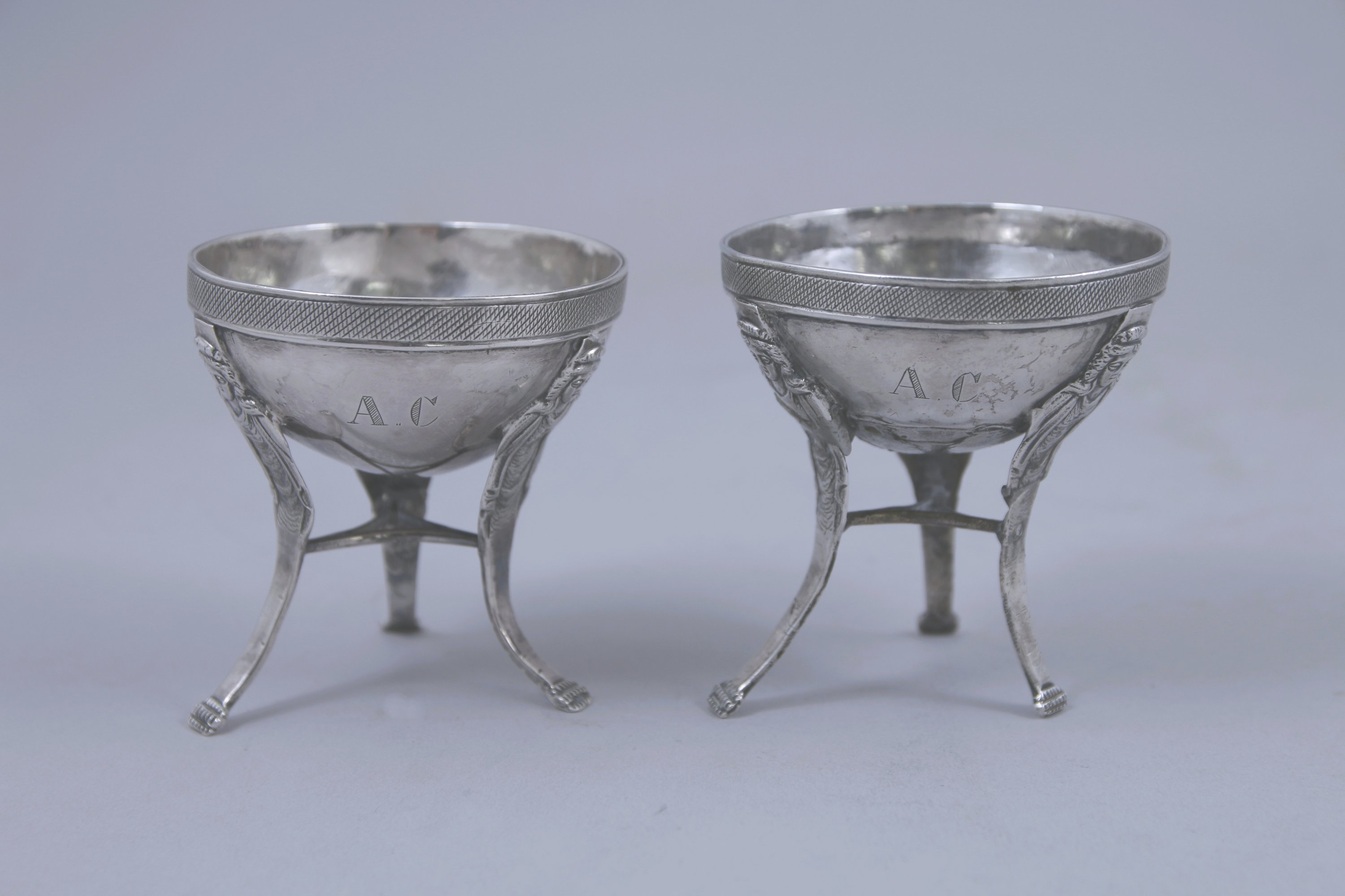 Demi SPHÈRES en argent tripode. Elles reposent sur des personnages...
