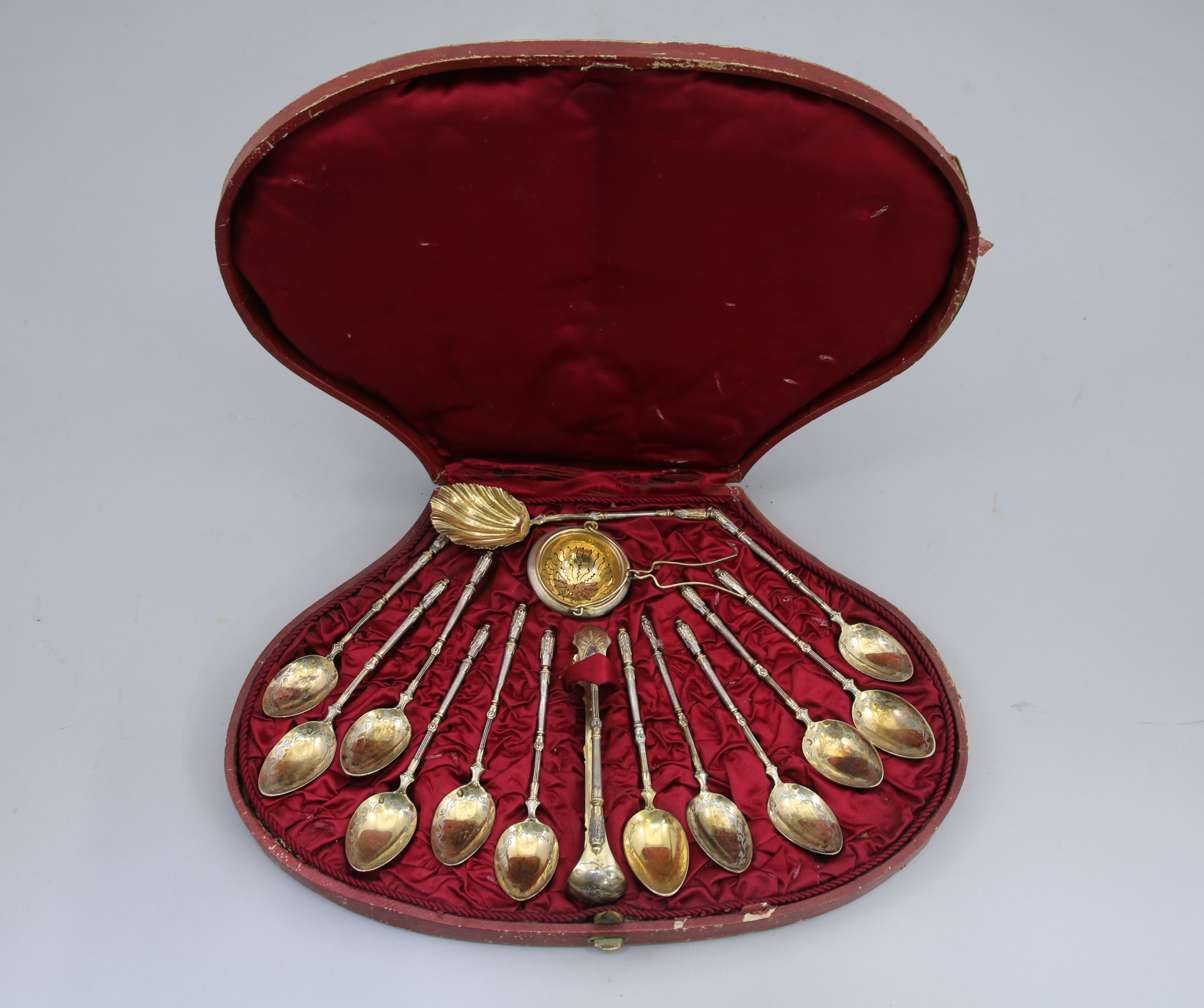 SERVICE à THÉ en vermeil, comprenant douze CUILLERS à THÉ,...