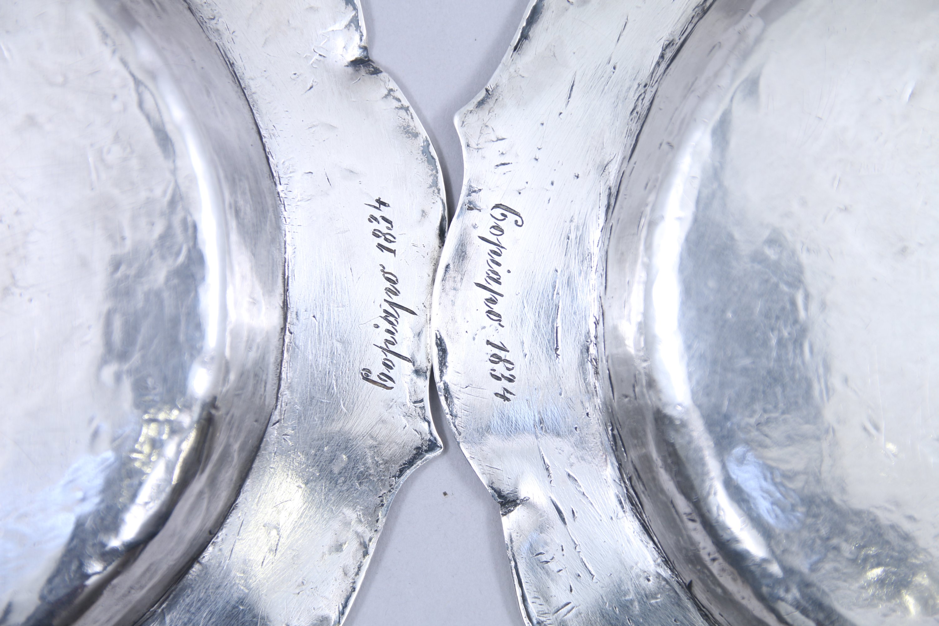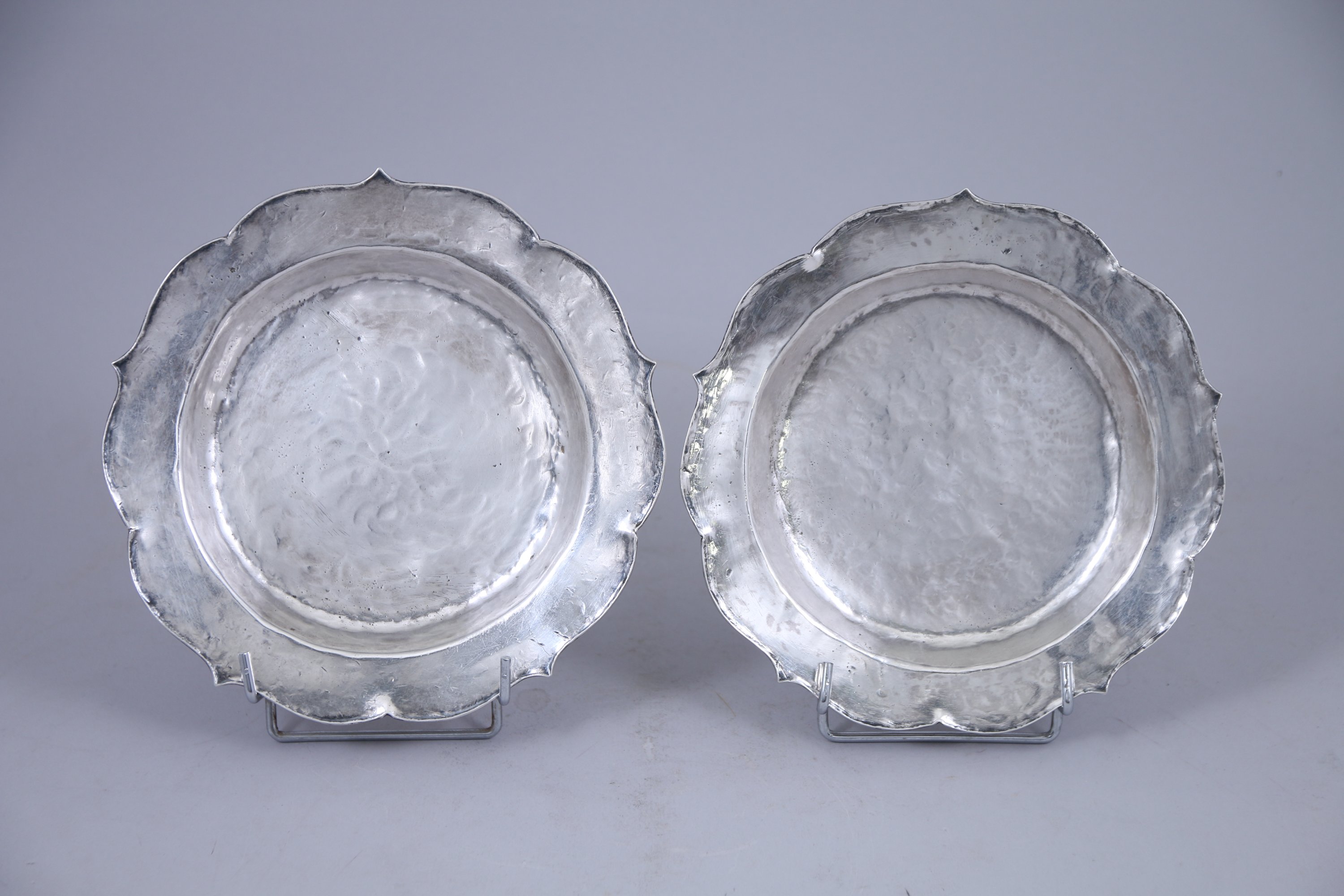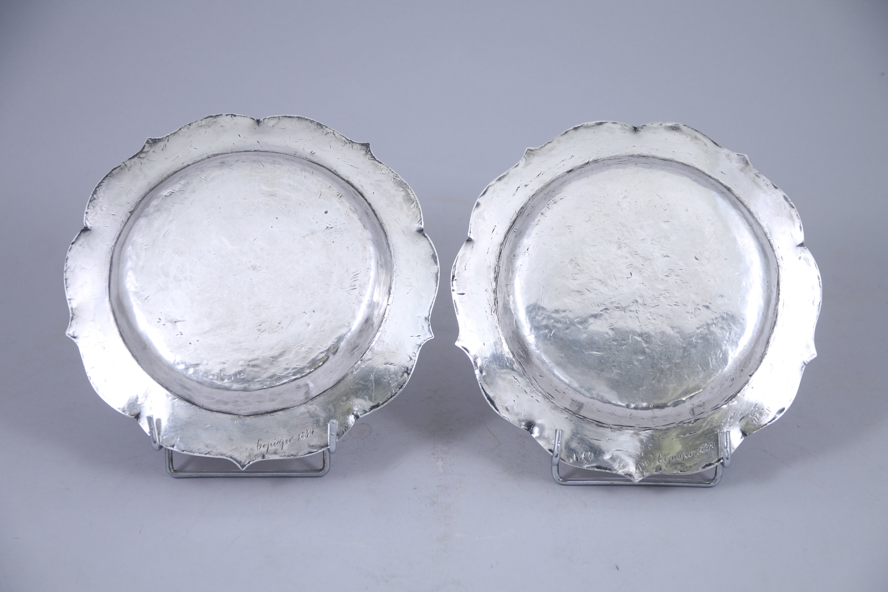 Deux PLATS en argent bas titre à bords contournés étoilés. GravéS "Copiapo 1834".