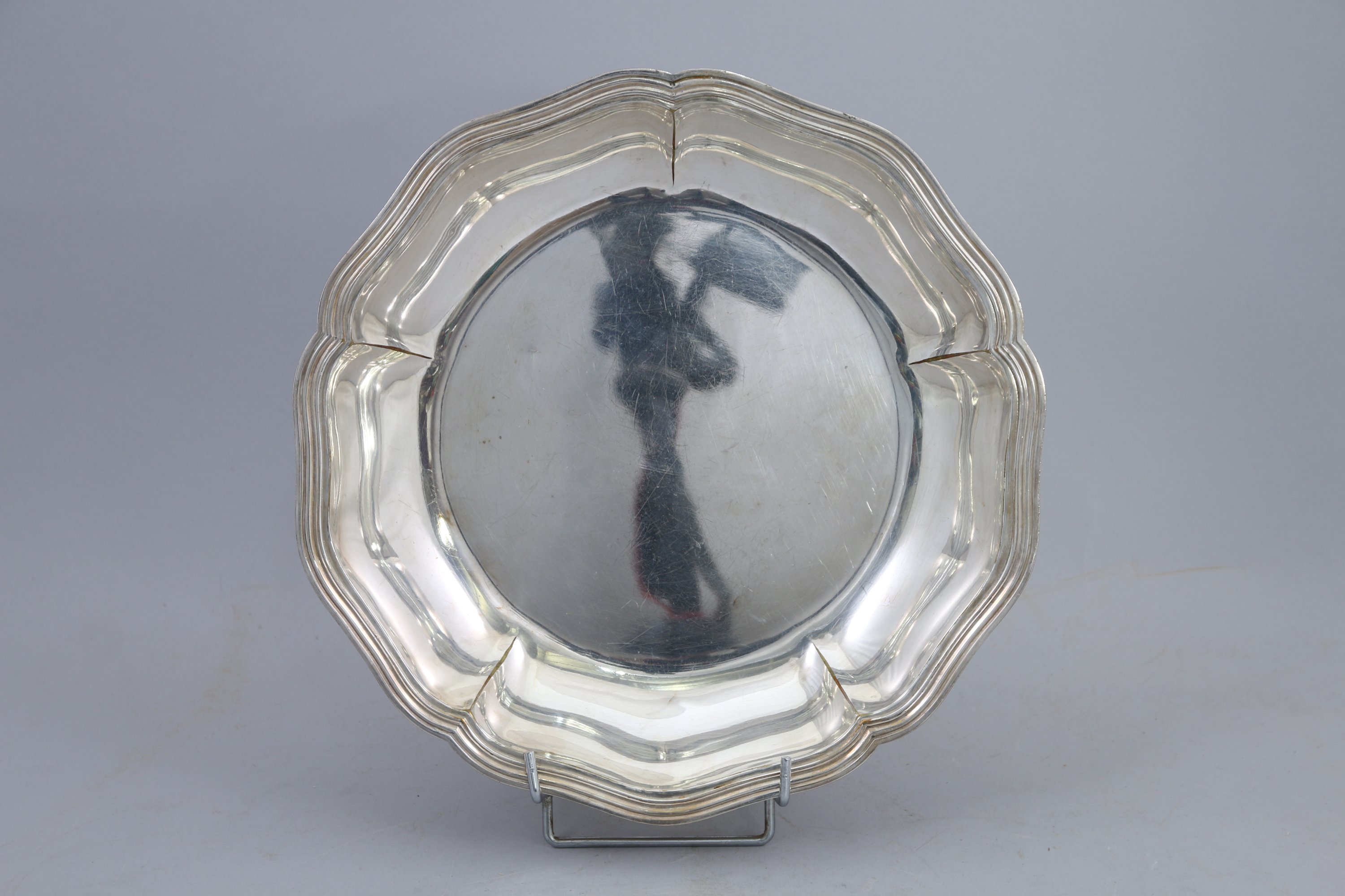PLAT creux en argent de forme circulaire à cinq lobes moulurés de filets.