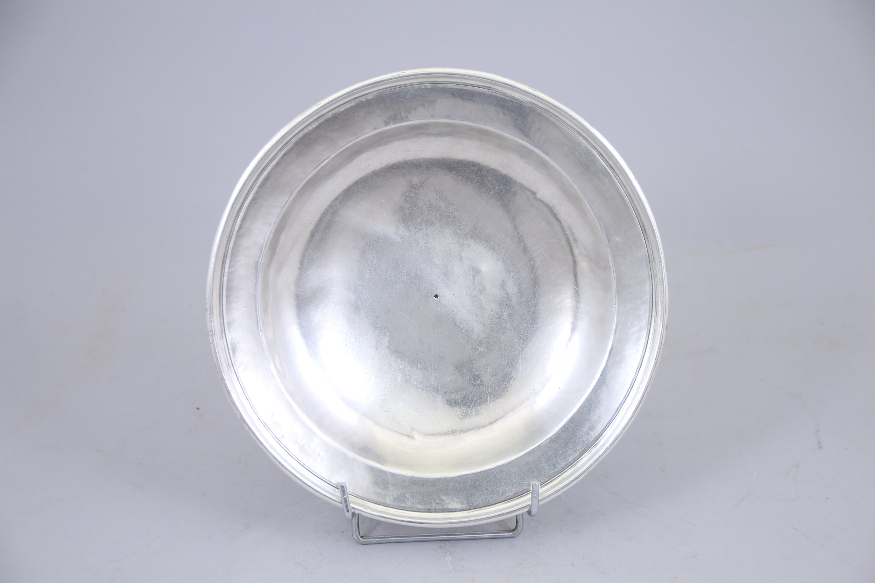PLAT CREUX circulaire en argent bas titre. Gravé au dos...