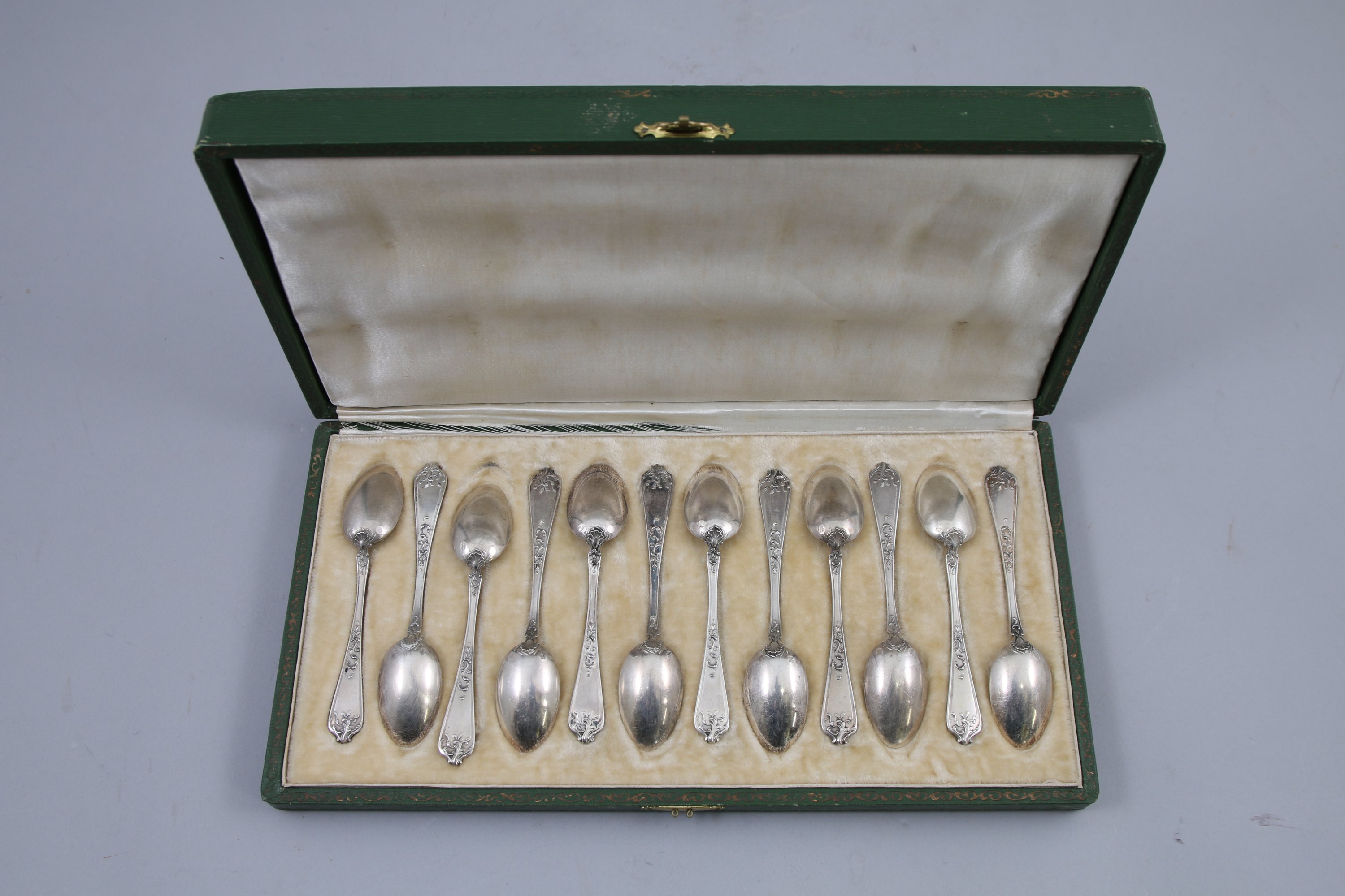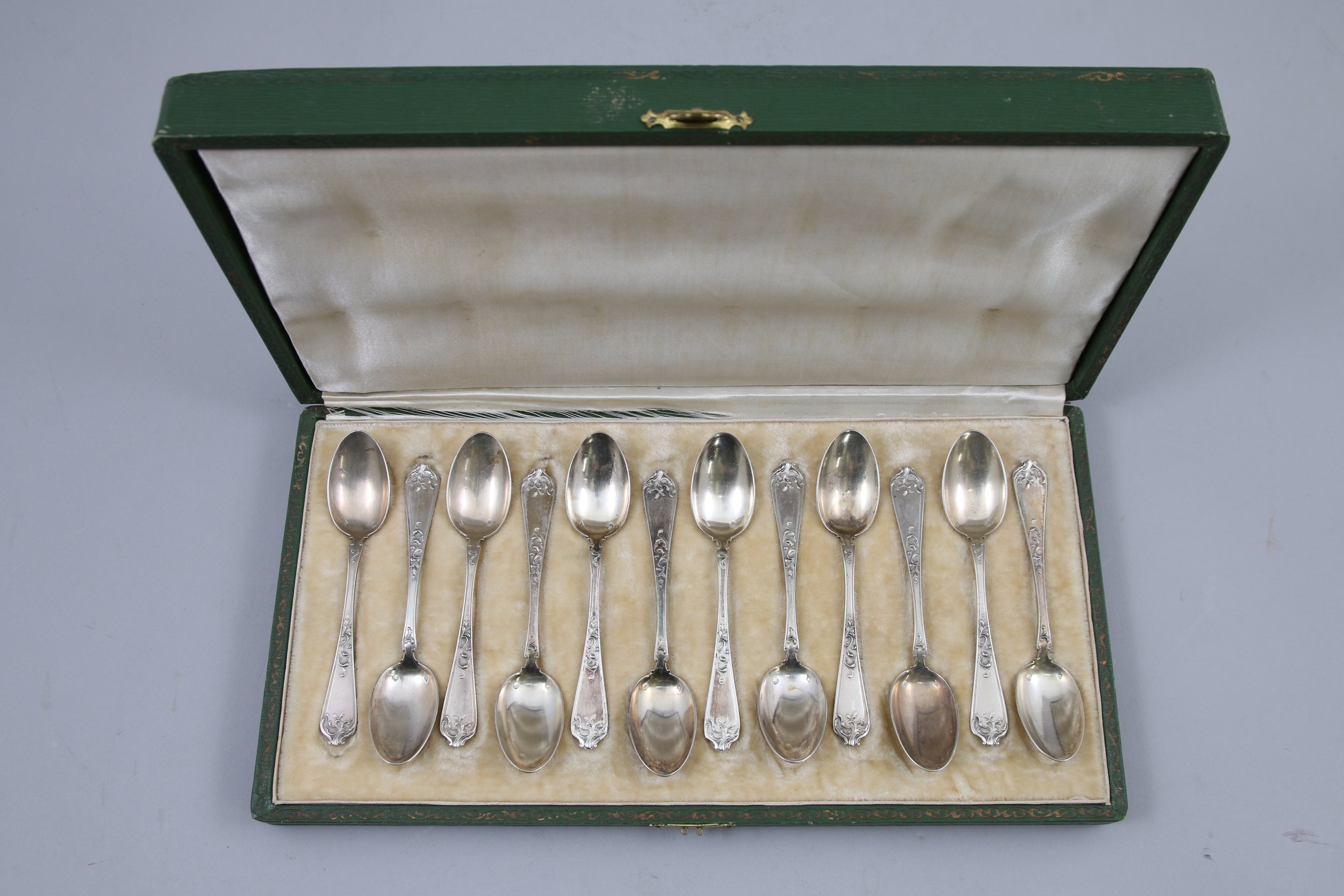 Douze CUILLERS à café, en argent. Modèle rinceaux et coquille.