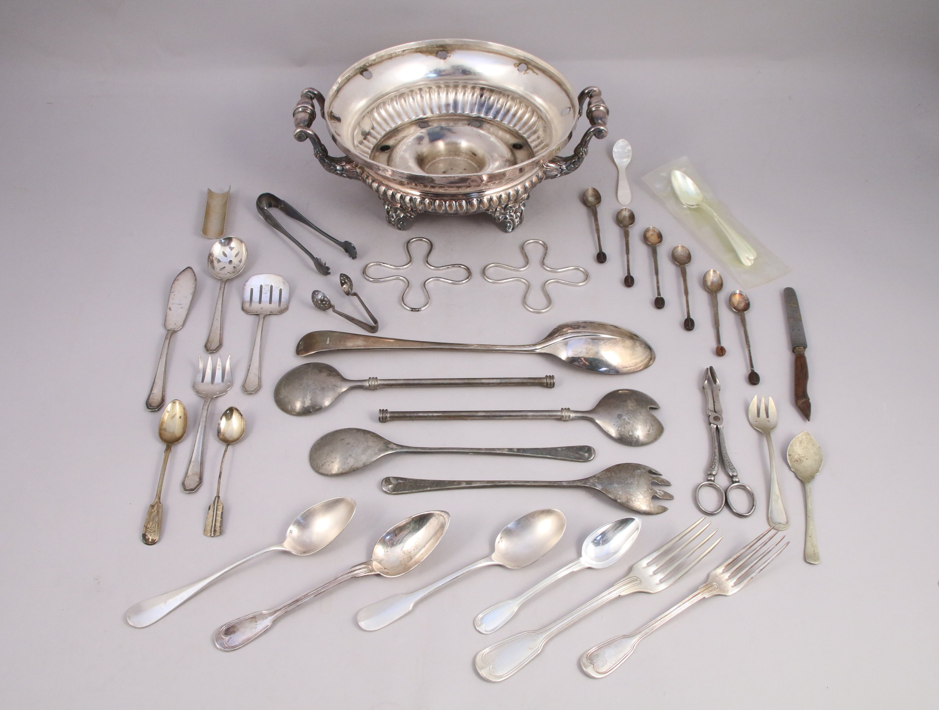 ENSEMBLE de COUVERTS en métal argenté, des REPOSE-COUTEAUX, CRUCIFIX, MÉDAILLES, CHAUFFE-PLAT en métal argenté, etc.