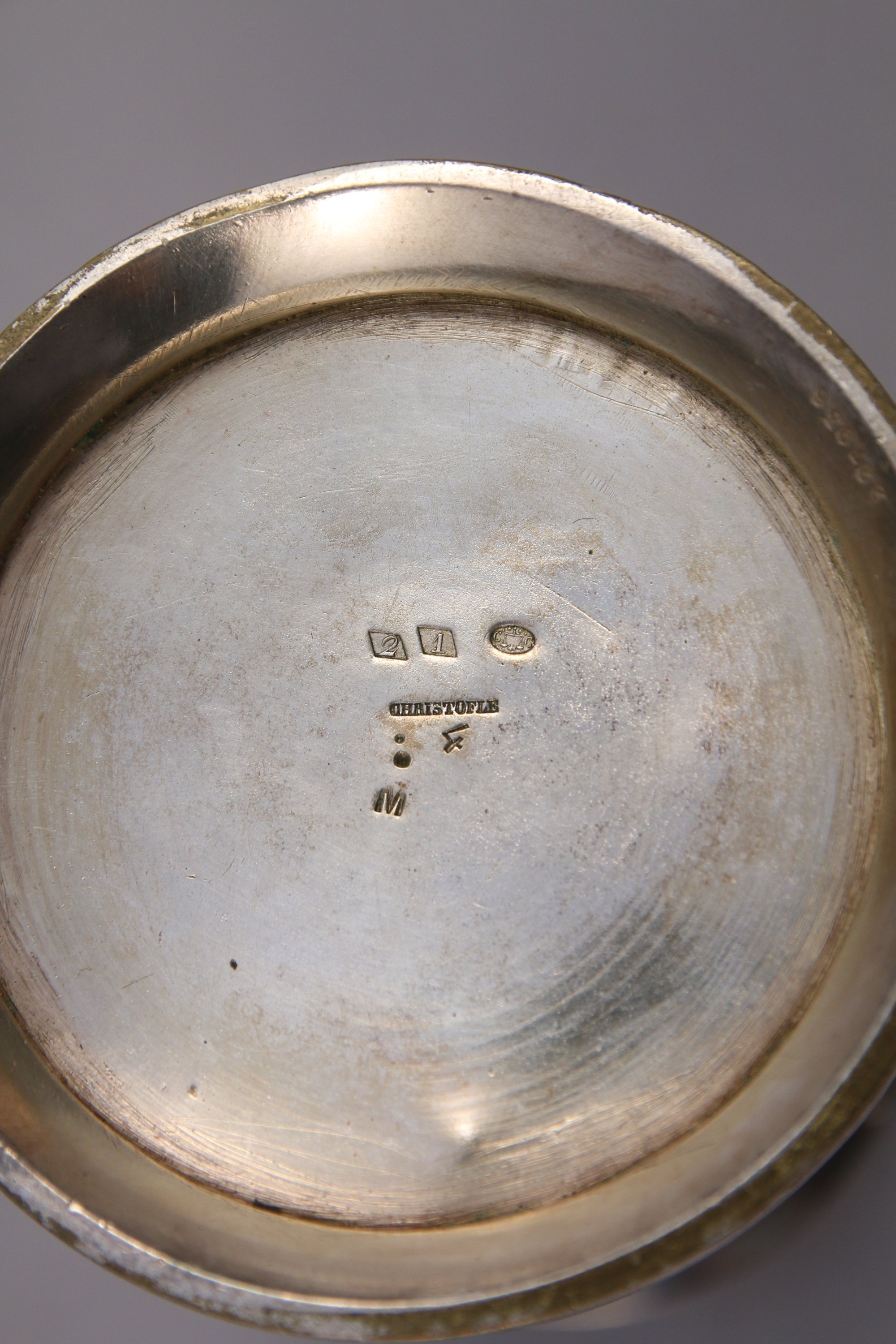 CHRISTOFLE. CHOCOLATIÈRE en métal argenté, de forme tronconique, manche latéral...