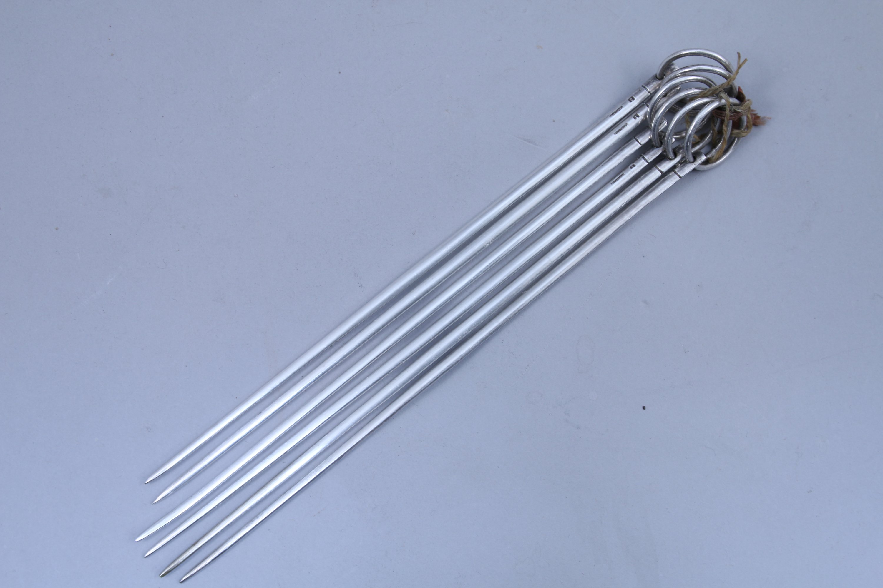Six HÂTELETS en métal argenté. Signés Christofle.
