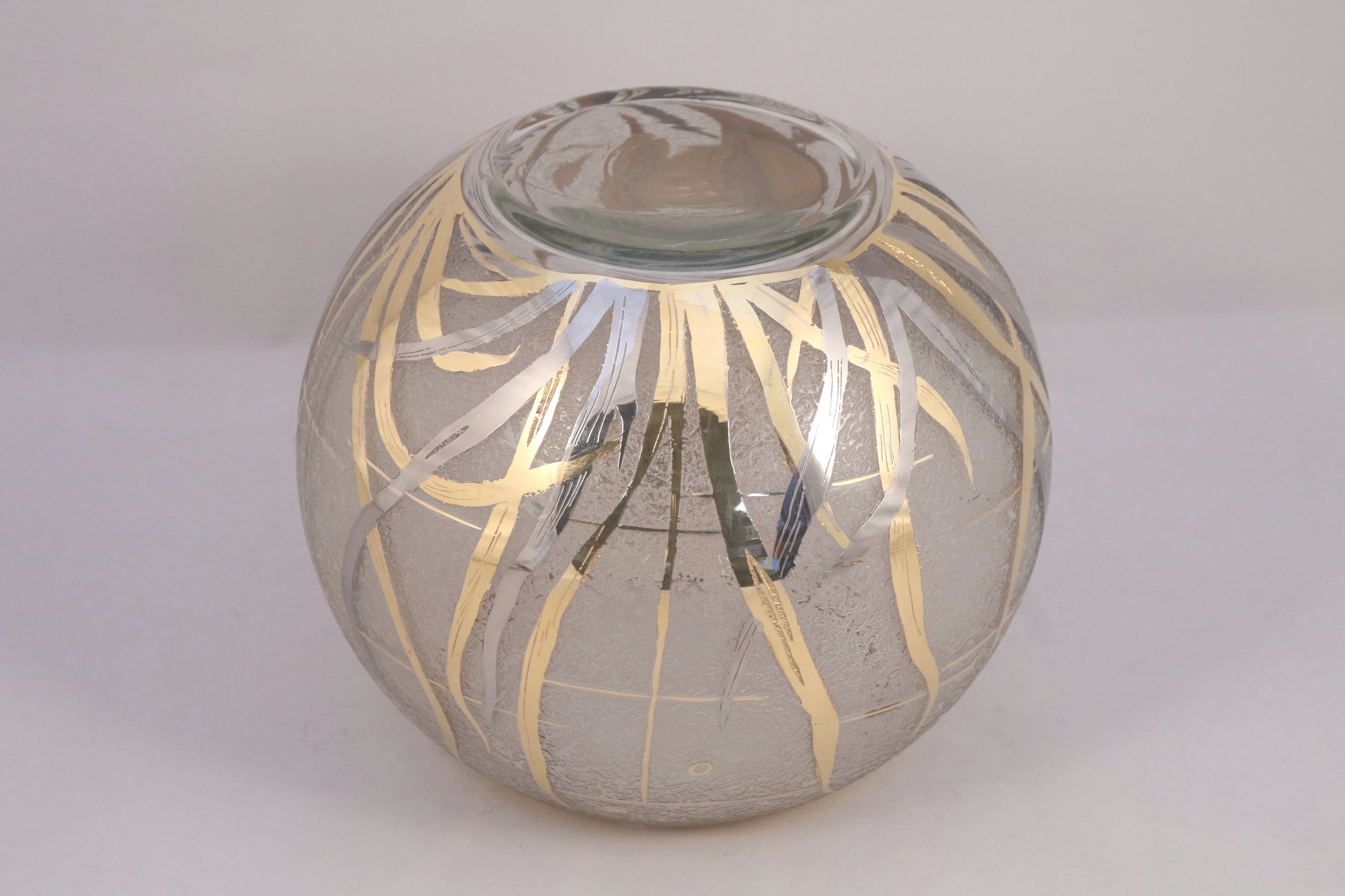 ADAT. Vase boule, circa 1960 en verre givré à décor...