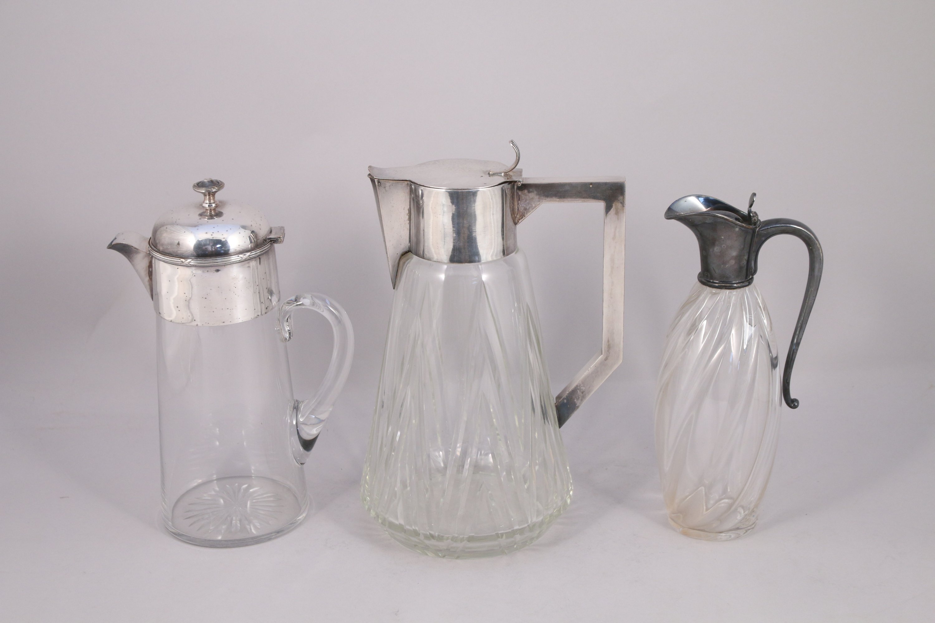 JOINT: CARAFE à VIN en verre de forme torse, monture en métal argenté. Haut. 27 cm.