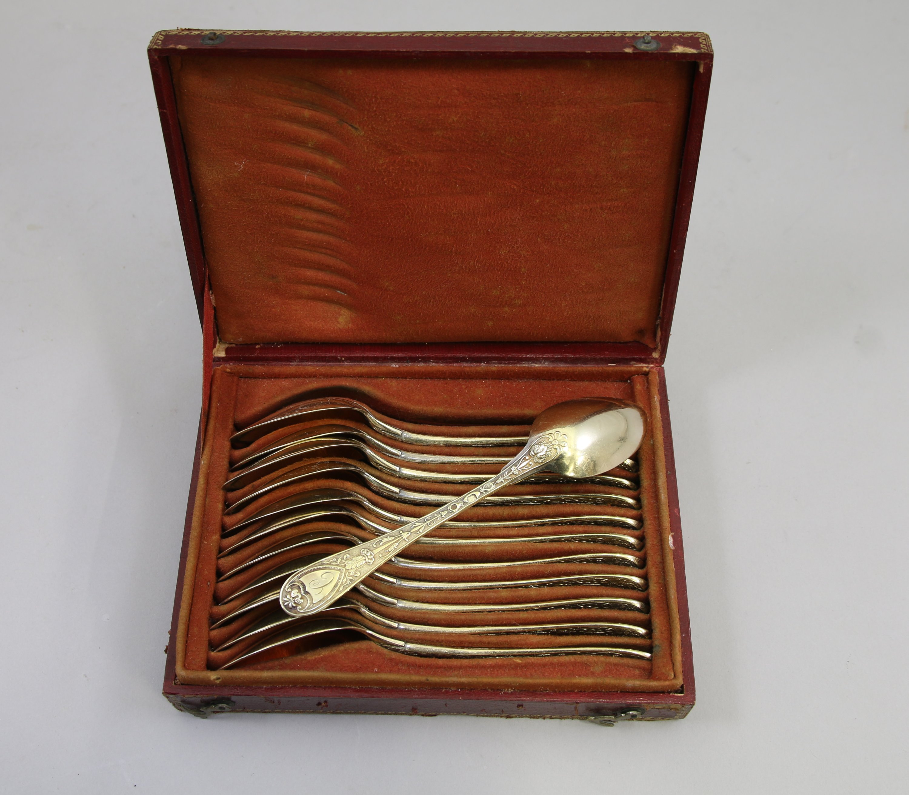 Douze PETITES CUILLERS en argent anciennement vermeillé à décor de...