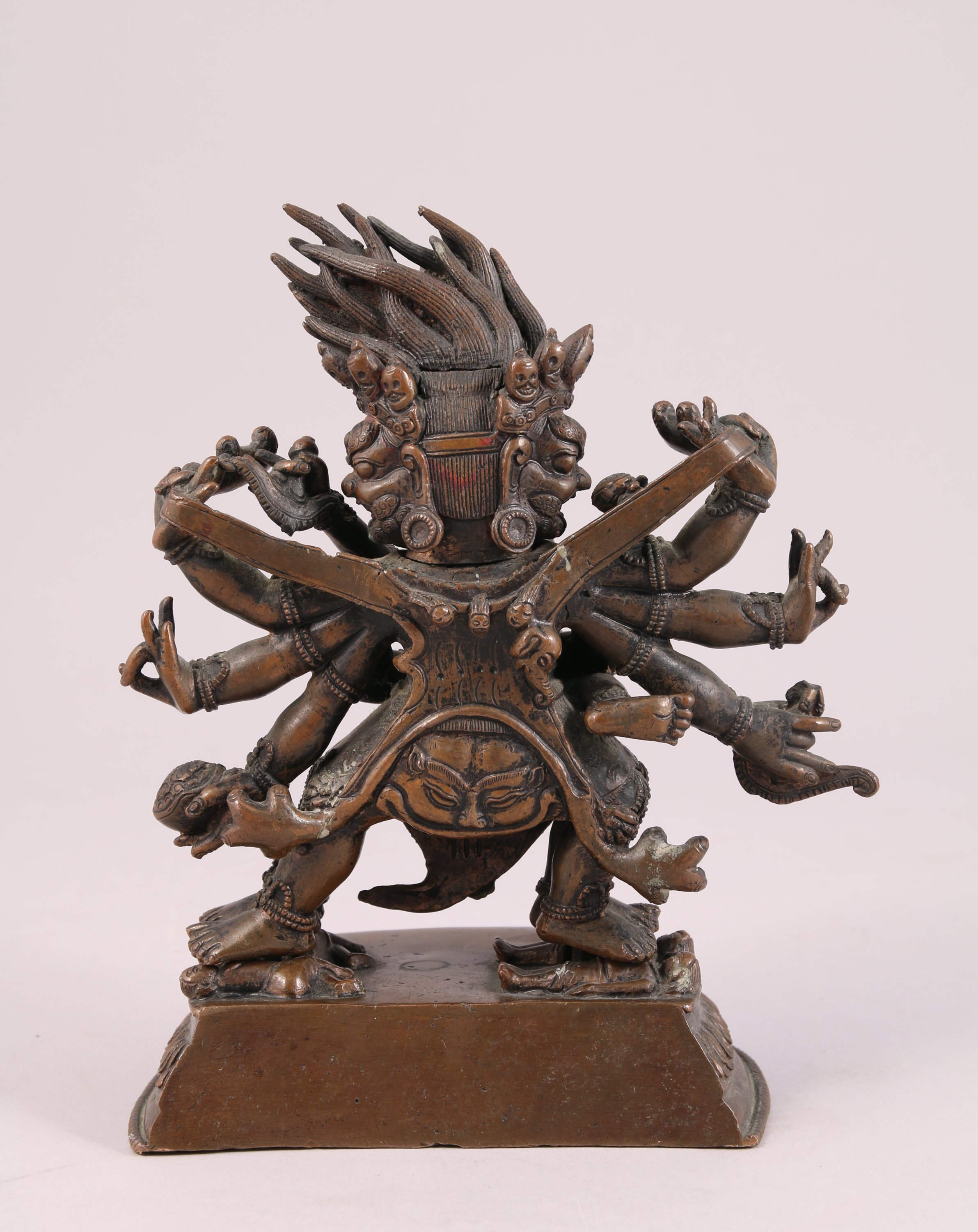 TIBET - XIXe s. STATUETTE de YAMANTAKA  en bronze...